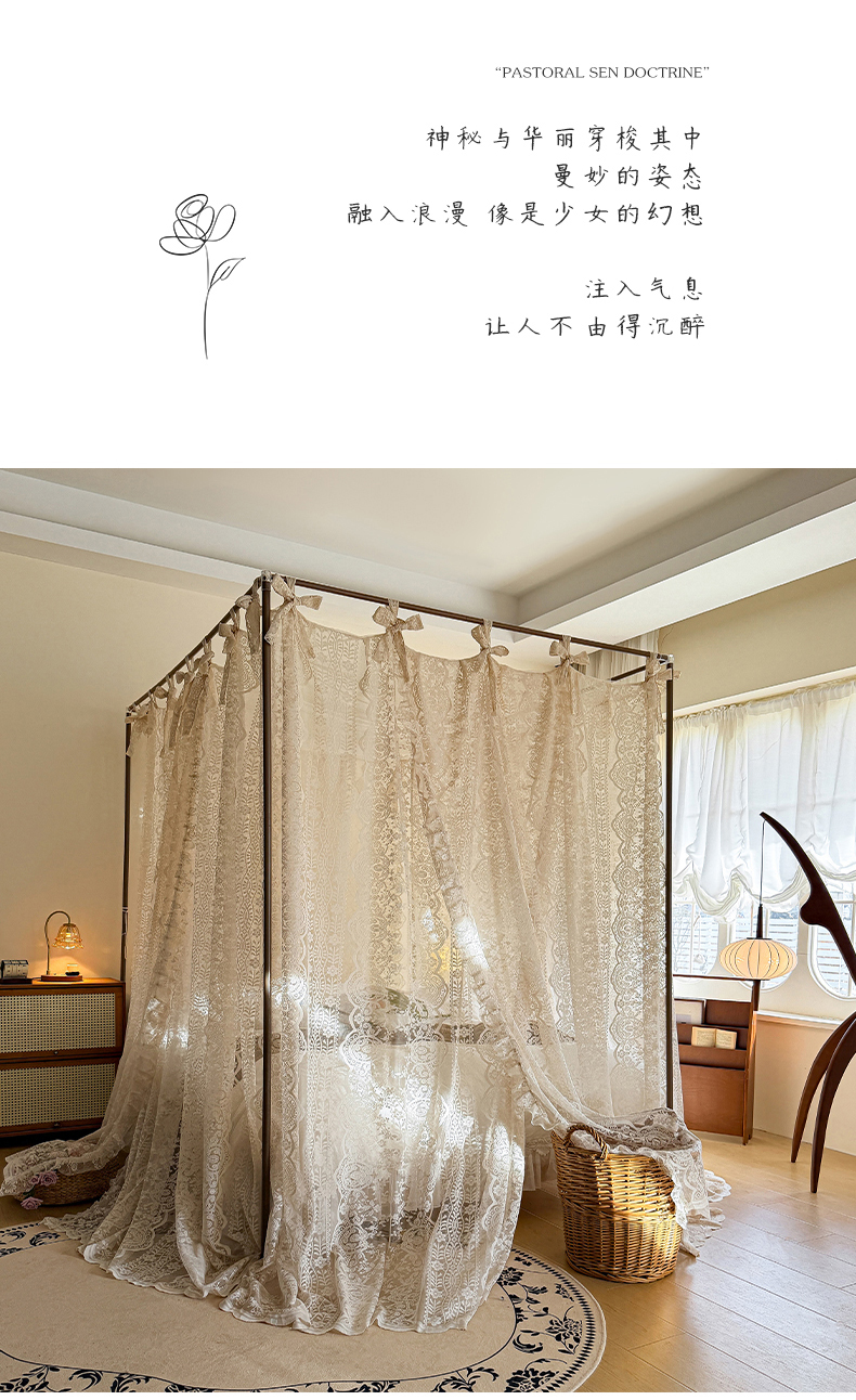• 91家纺网 家纺一手货源 找家纺 (总)都市缘蚊帐 2026新款浪漫905多丽棉纱落地宫廷蚊帐,麦芽杏-场景1,麦芽杏-场景2,粉扑色,摩卡,云雾白