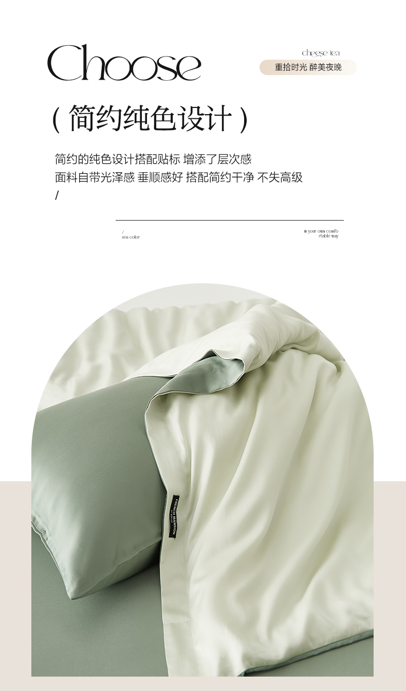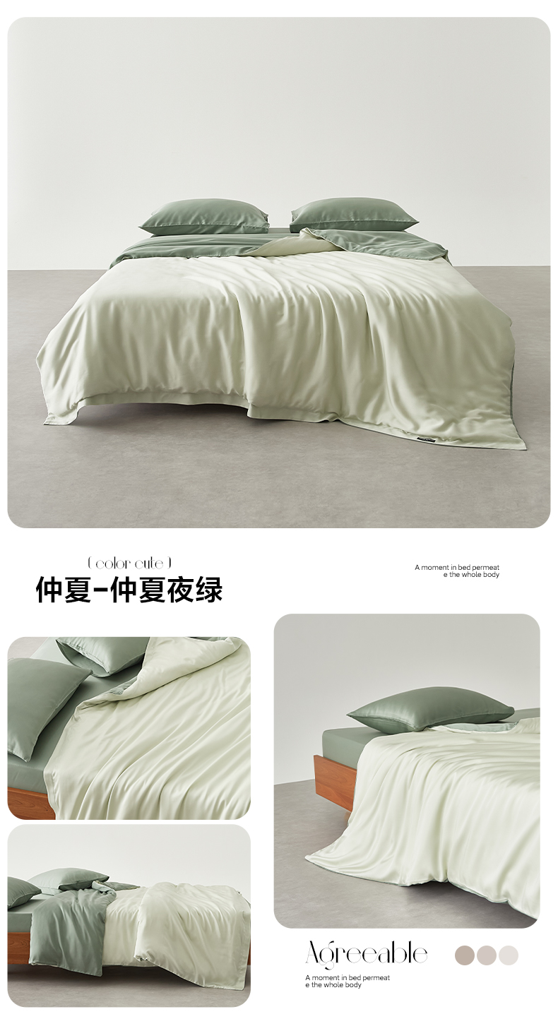 商品名称:EH家居 2026春夏新款简约纯色天丝单品被套 仲夏-仲夏夜绿