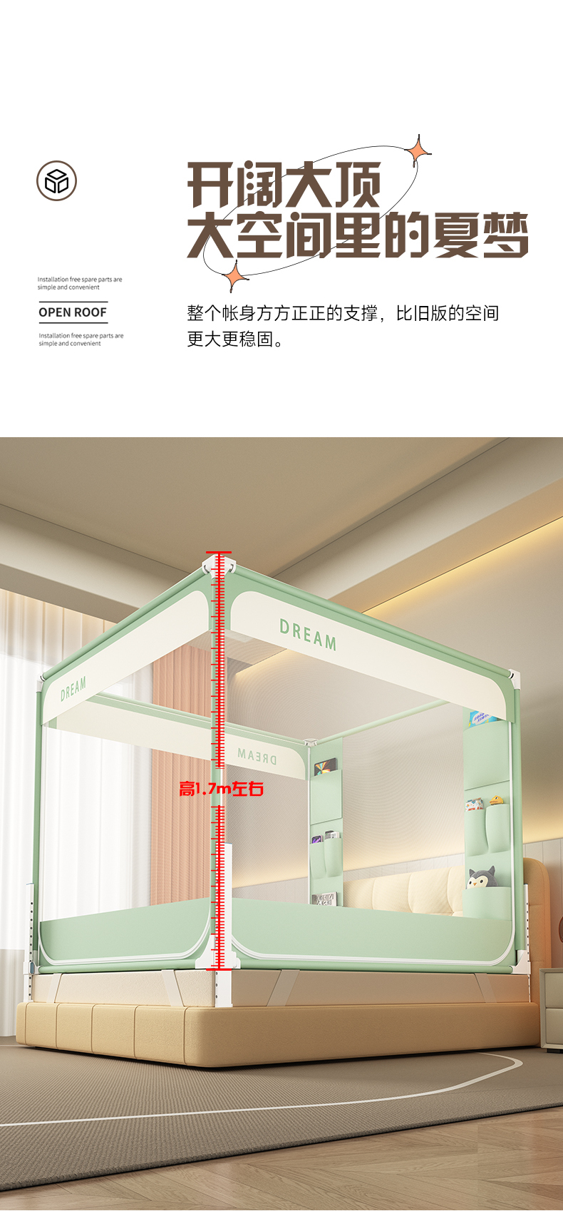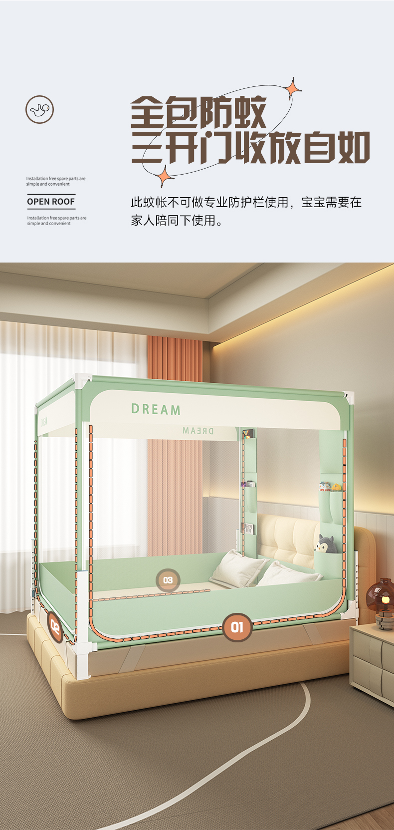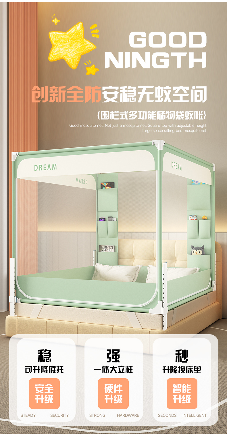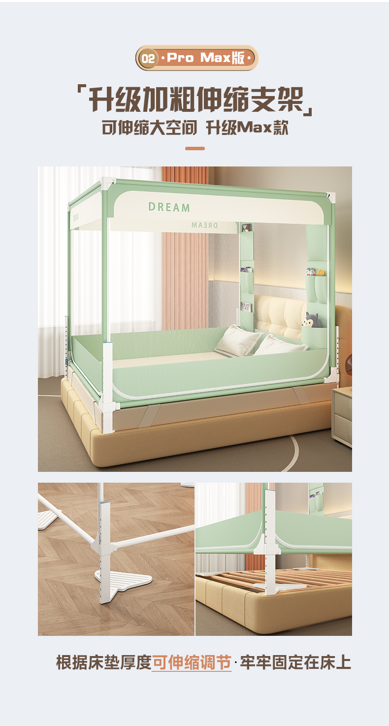当前位置: 91家纺网 > 商品网购 > 床上用品 > 蚊帐 > 坐床式蚊帐 > 富莱星蚊帐 2026新款双丝加厚坐床蚊帐大力士围栏擎天柱支架-梦境 梦境-绿