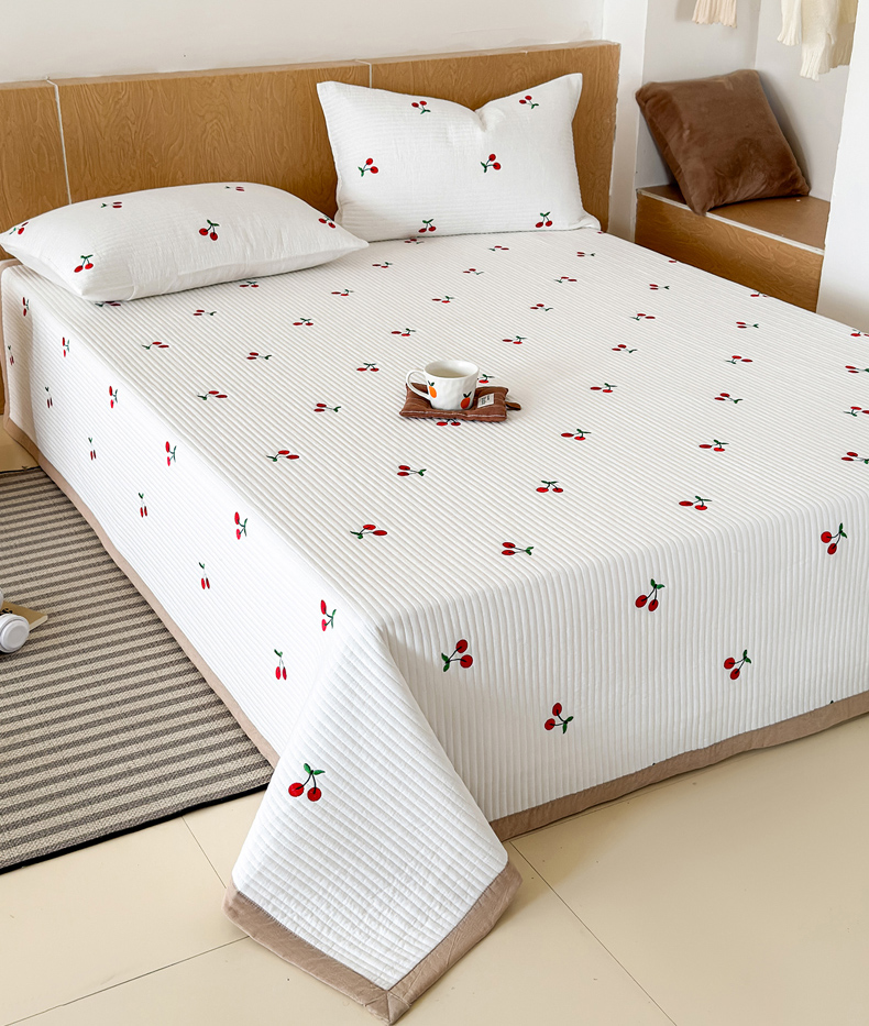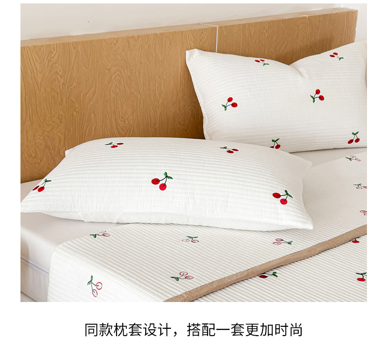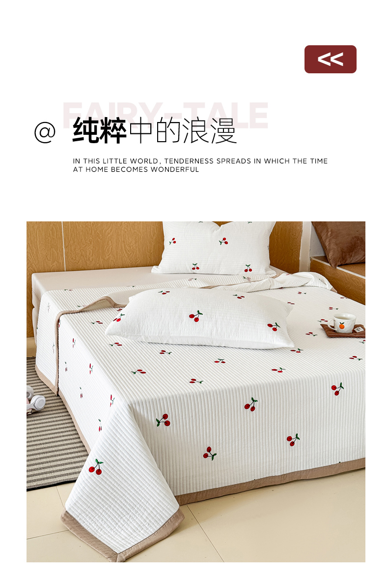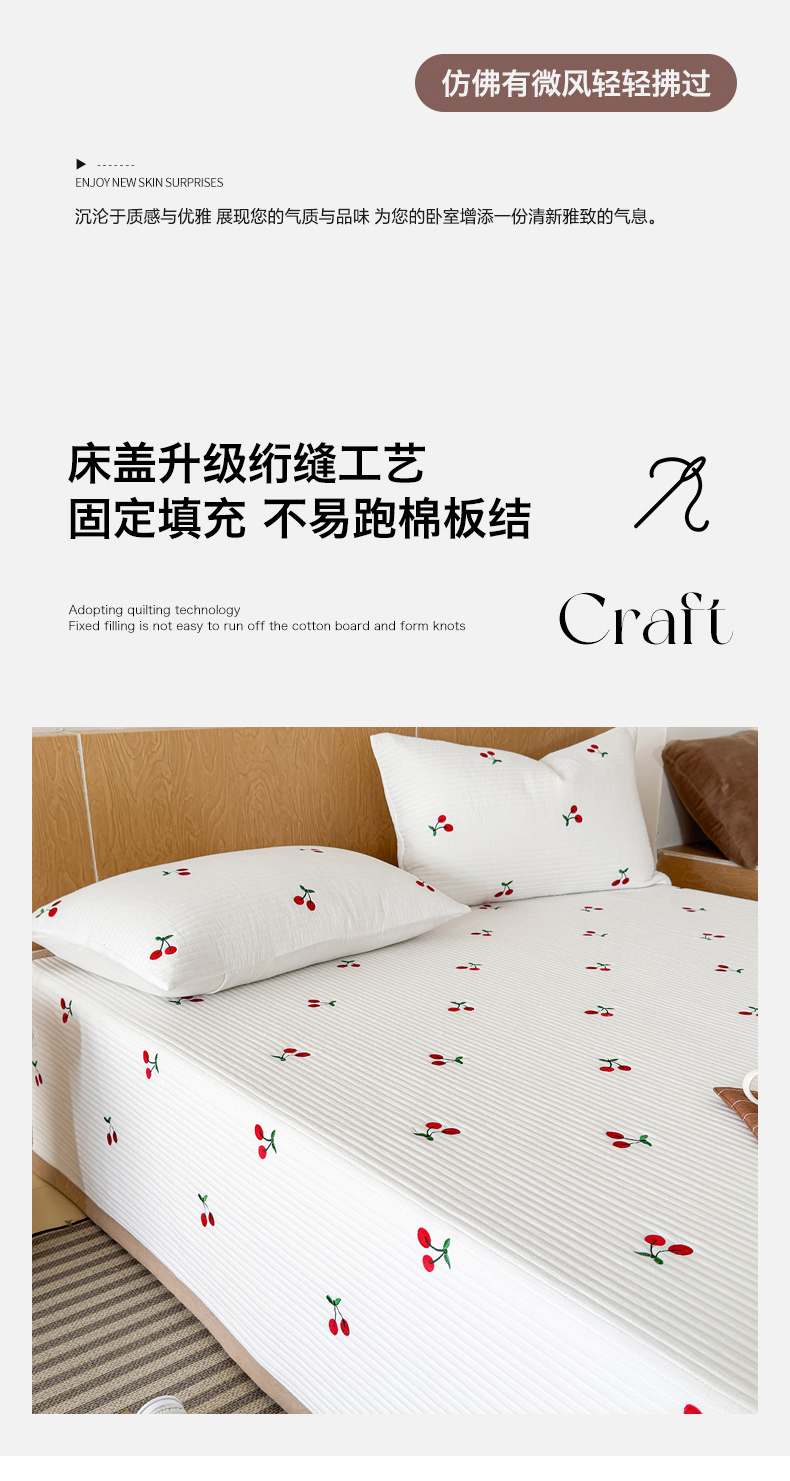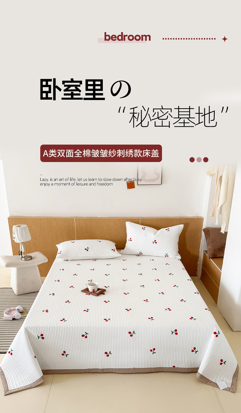 木楌家居 2026春夏新款双面全棉纯棉皱皱纱刺绣款床盖床盖单件 樱桃小方糖