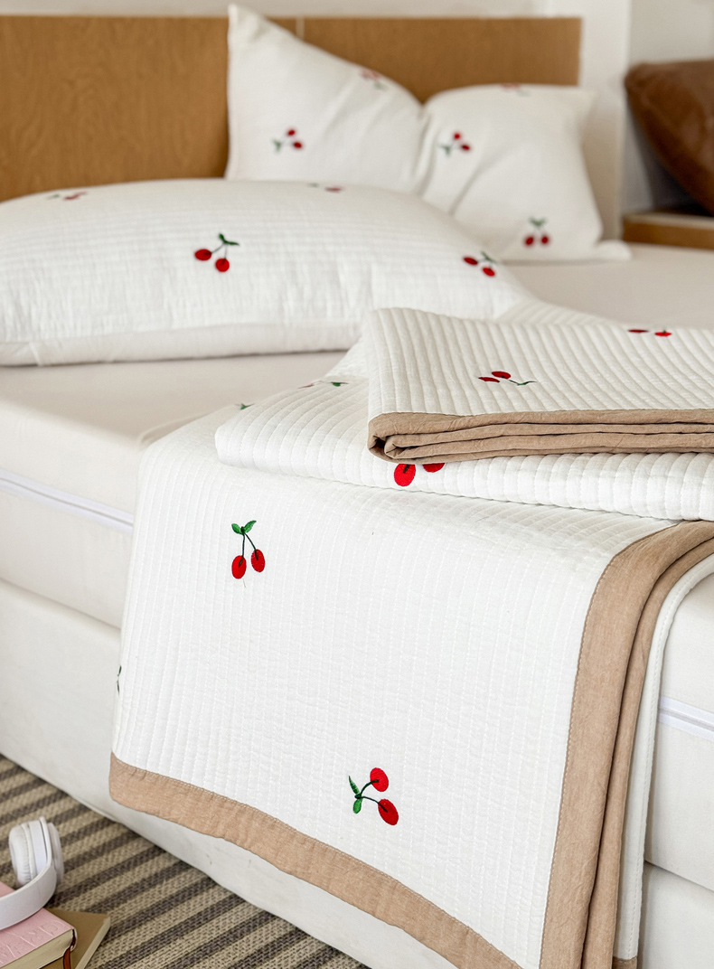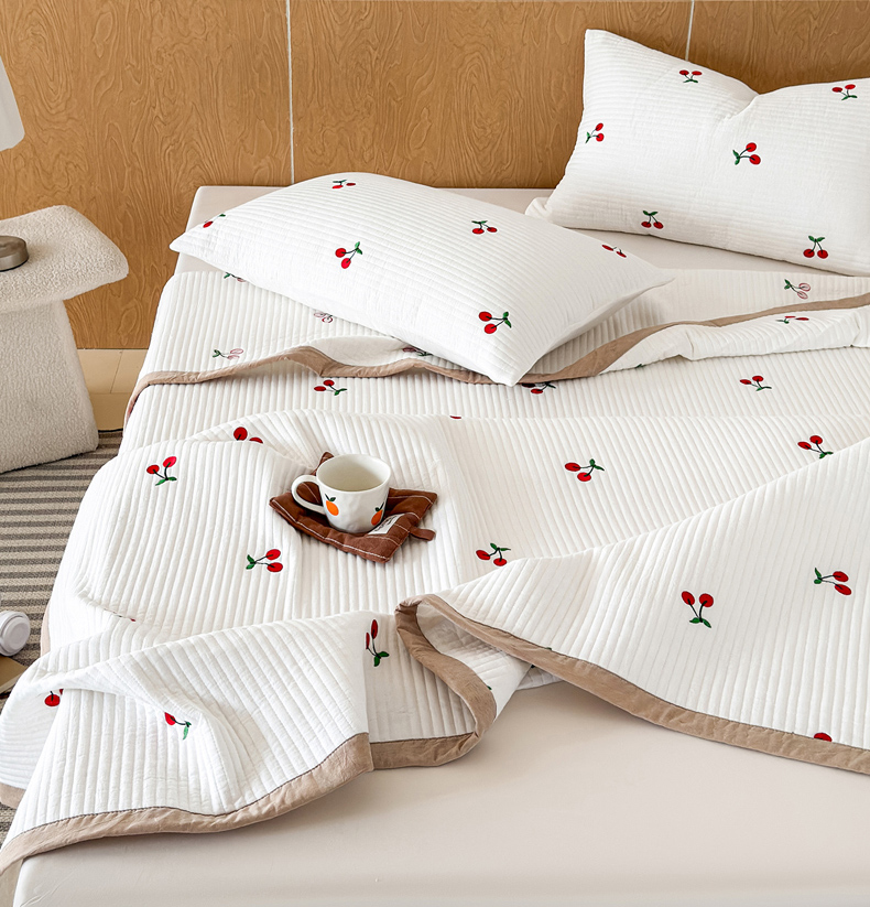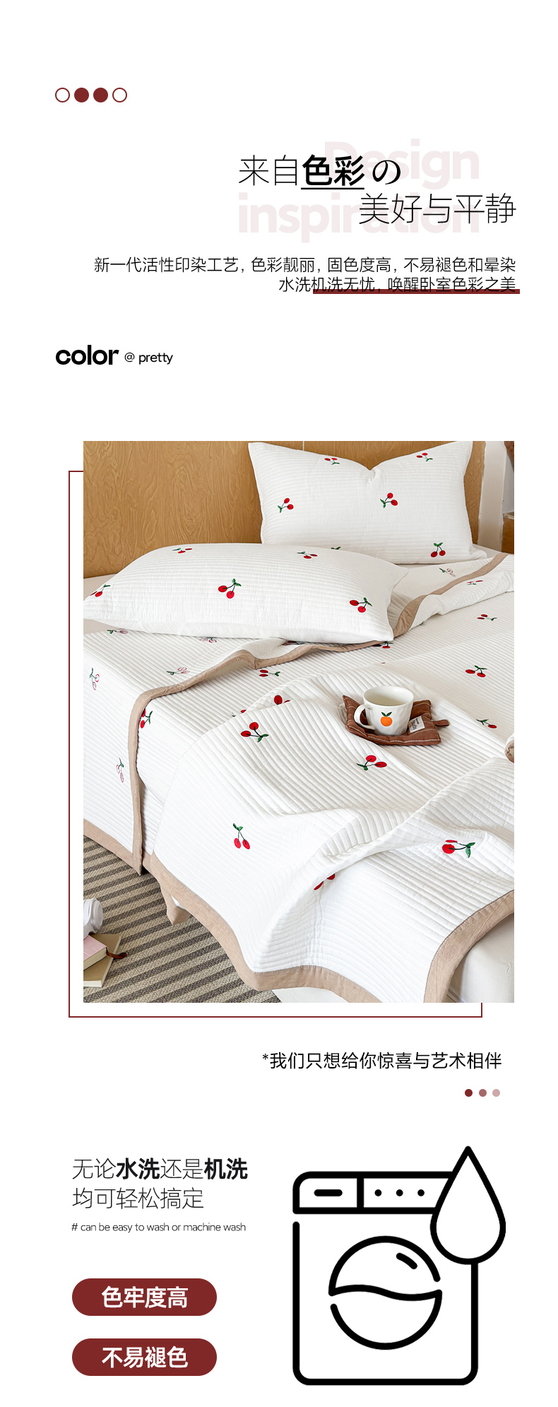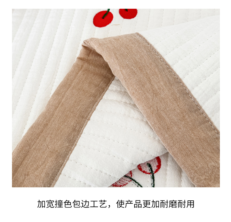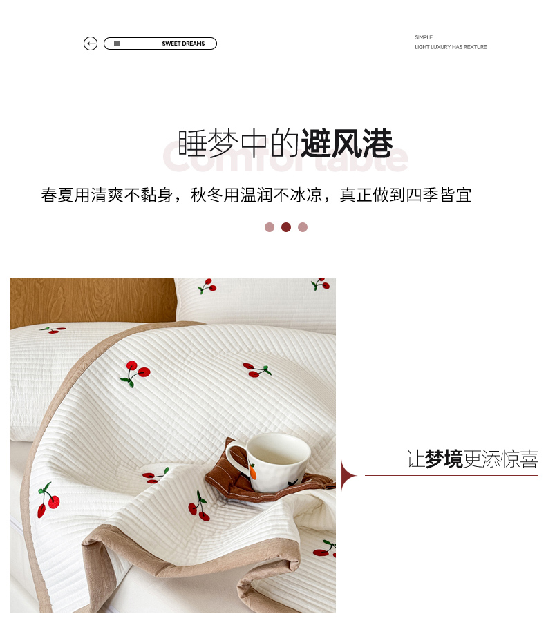 木楌家居 2026春夏新款双面全棉纯棉皱皱纱刺绣款床盖床盖单件 樱桃小方糖