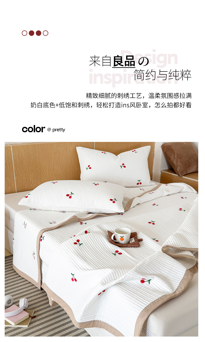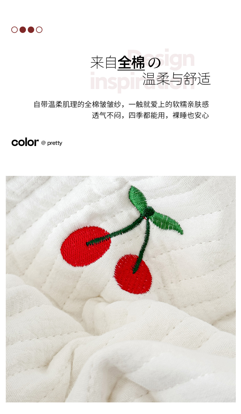 商品名称:木楌家居 2026春夏新款双面全棉纯棉皱皱纱刺绣款床盖床盖单件 樱桃小方糖