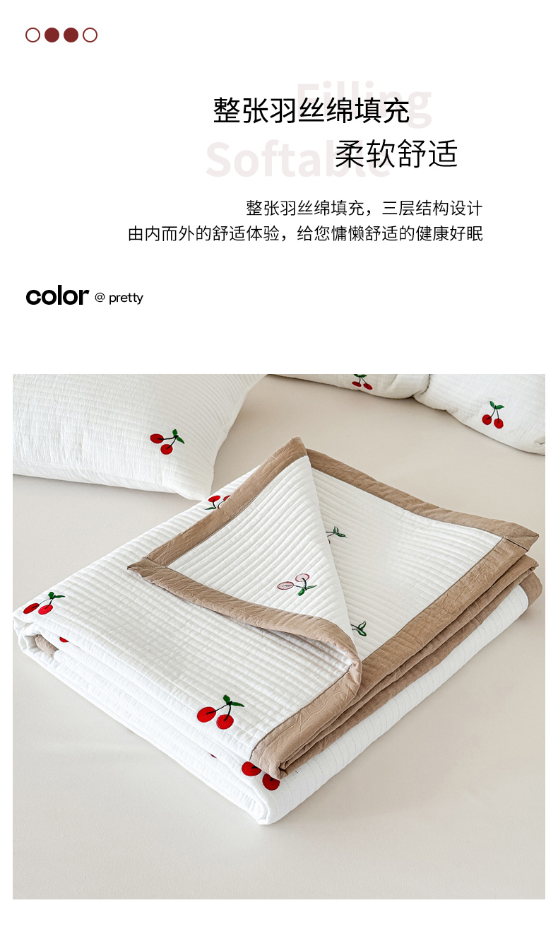 (总)木楌 2025年新款双层皱皱纱刺绣款夏被大豆被,蓓蕾,小飞象,蝴蝶结,领结兔,枇杷叶,三叶草,小樱桃,幸运熊