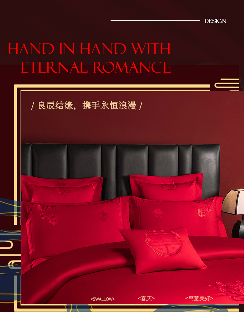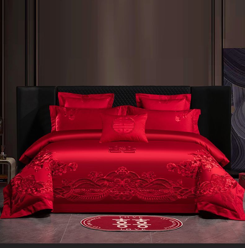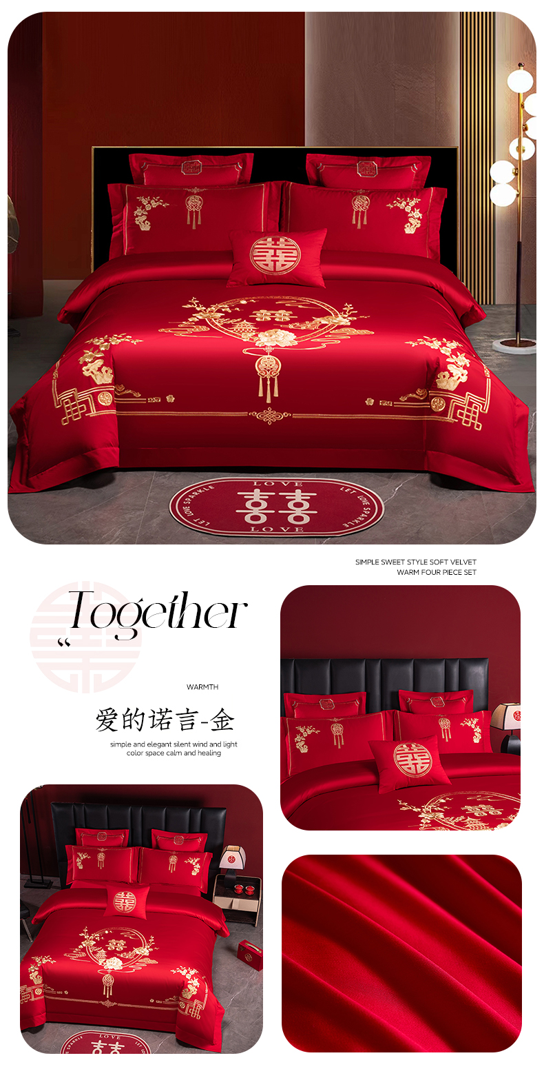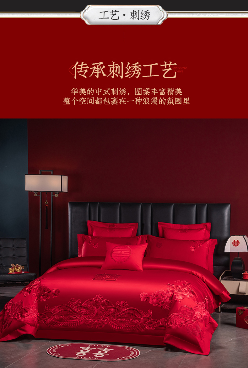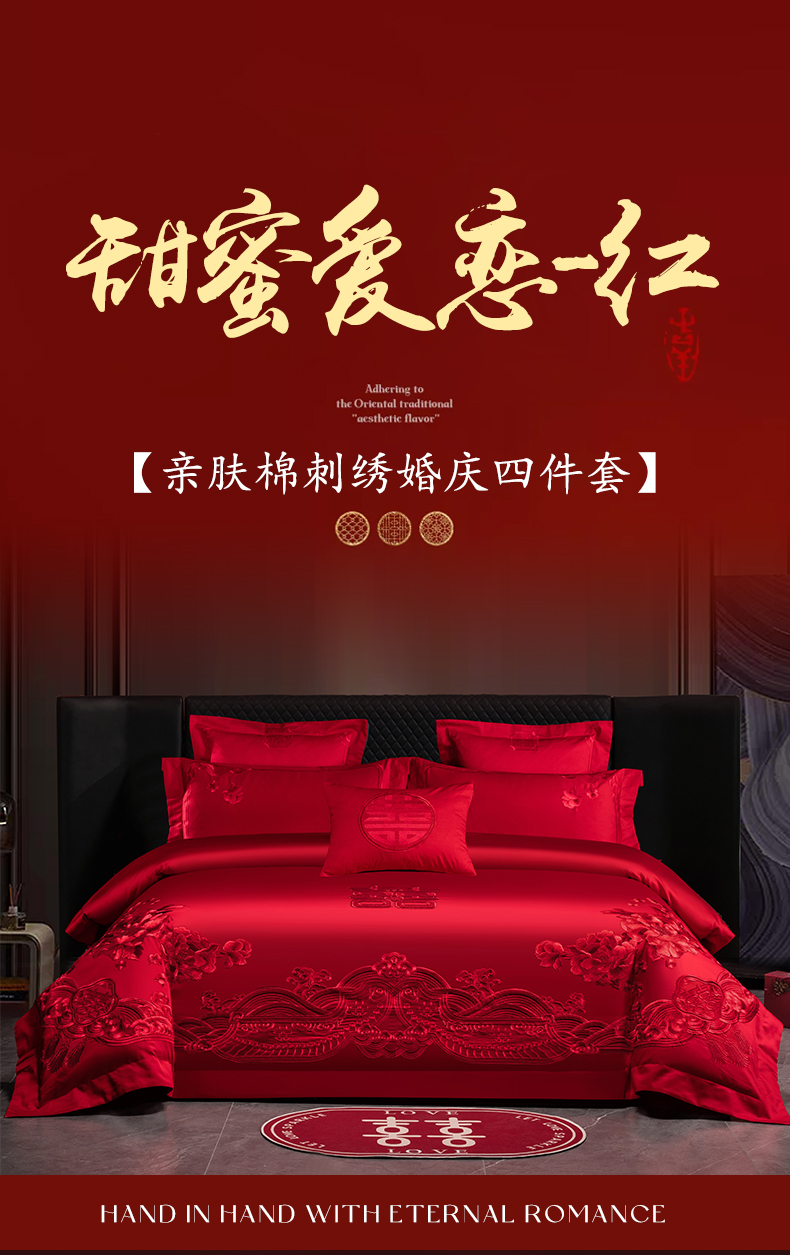 当前位置: 91家纺网 > 商品网购 > 床品套件 > 四件套 > 婚庆四件套 > 博之洋婚庆 2026新款新中式亲肤棉婚庆大红刺绣系列四件套 甜蜜爱恋-红