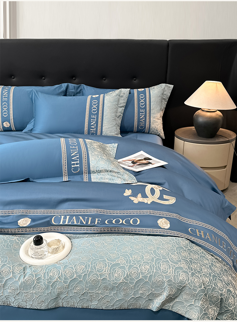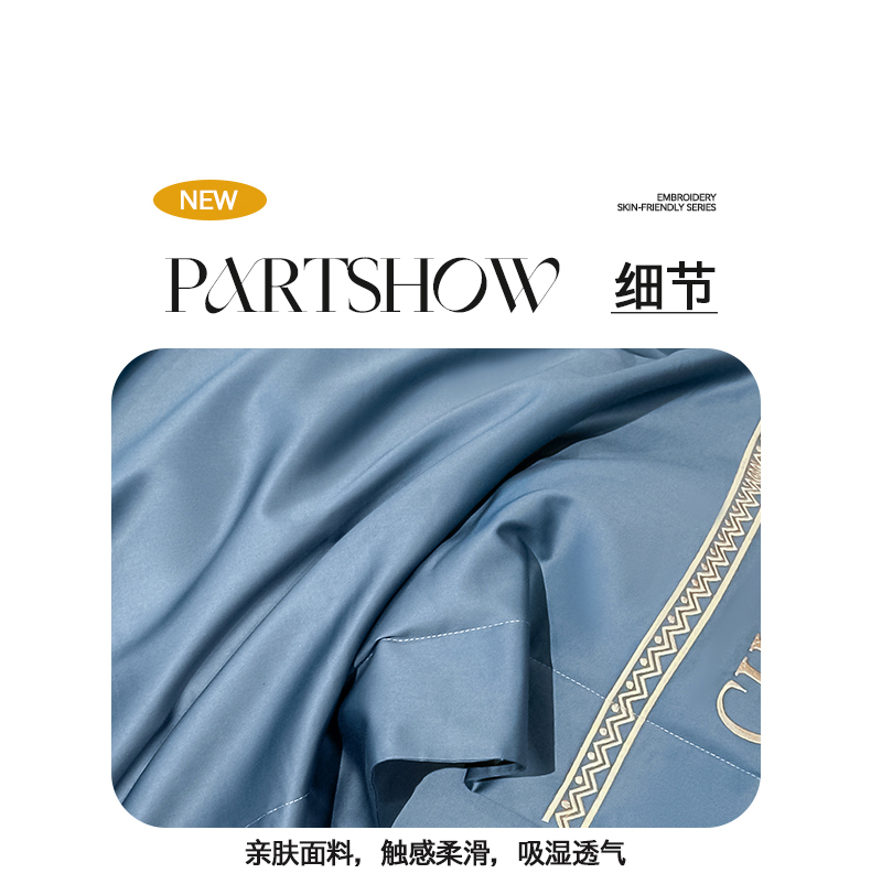 (总)置顶家纺 2026新款羽枫亲肤提花刺绣四件套,羽枫-宾利蓝,羽枫-大红,羽枫-繁星蓝,羽枫-高级灰,羽枫-浅香槟,羽枫-玉粉