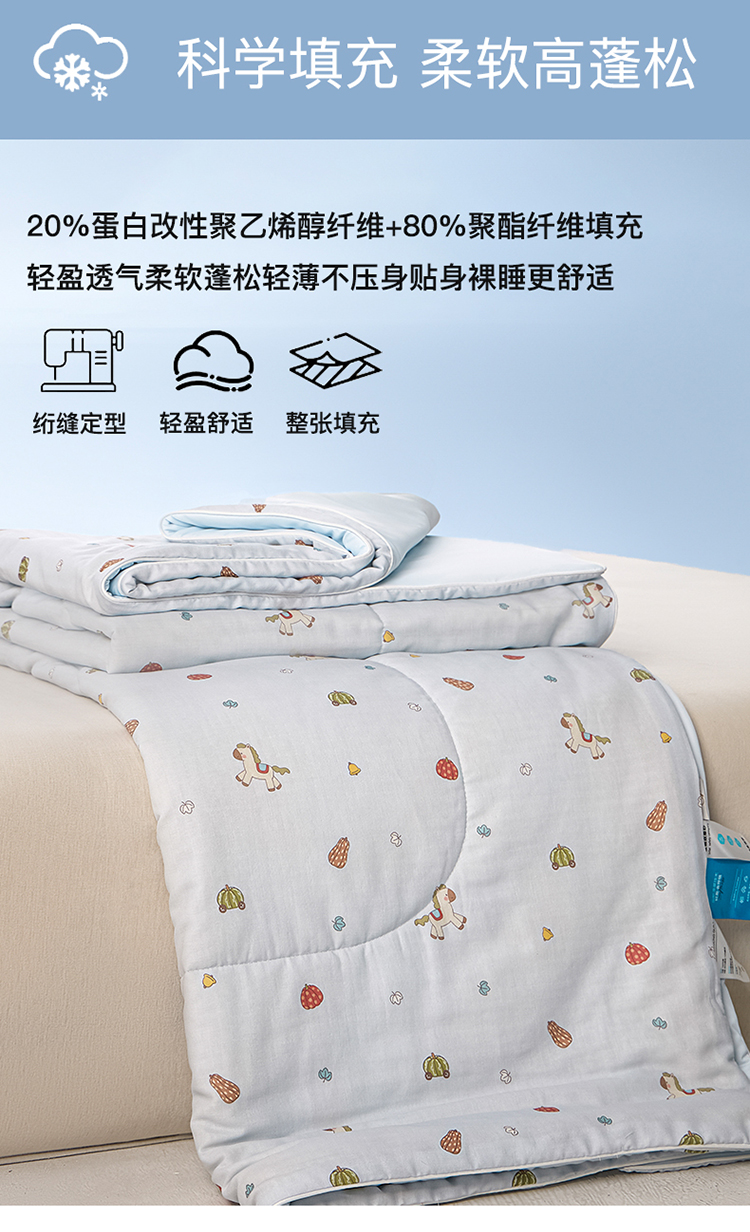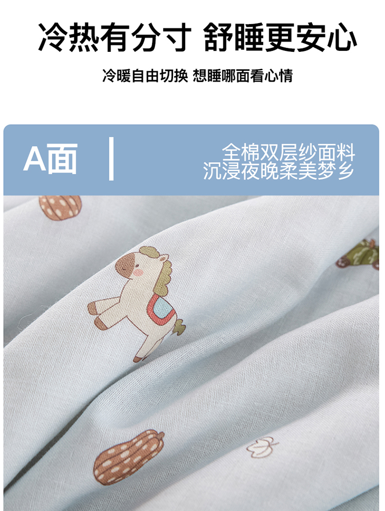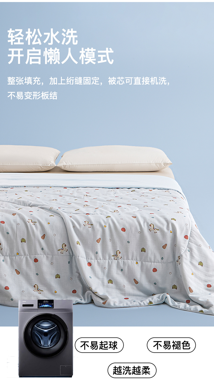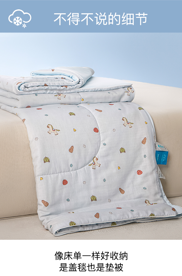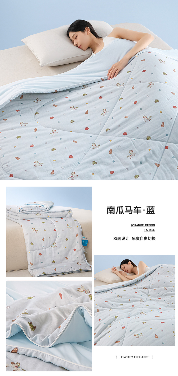 商品名称:金昱纺 2026春夏新款A类全棉双层纱棉花单夏被夏凉被空调被 南瓜马车-蓝