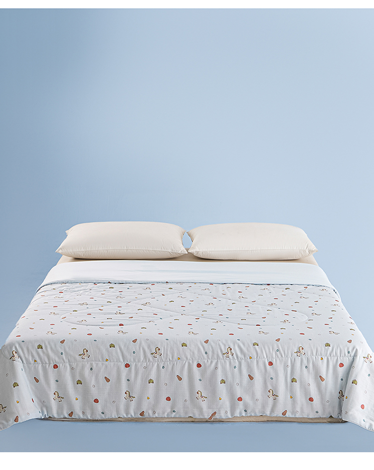 金昱纺 2026春夏新款A类全棉双层纱棉花单夏被夏凉被空调被 南瓜马车-蓝