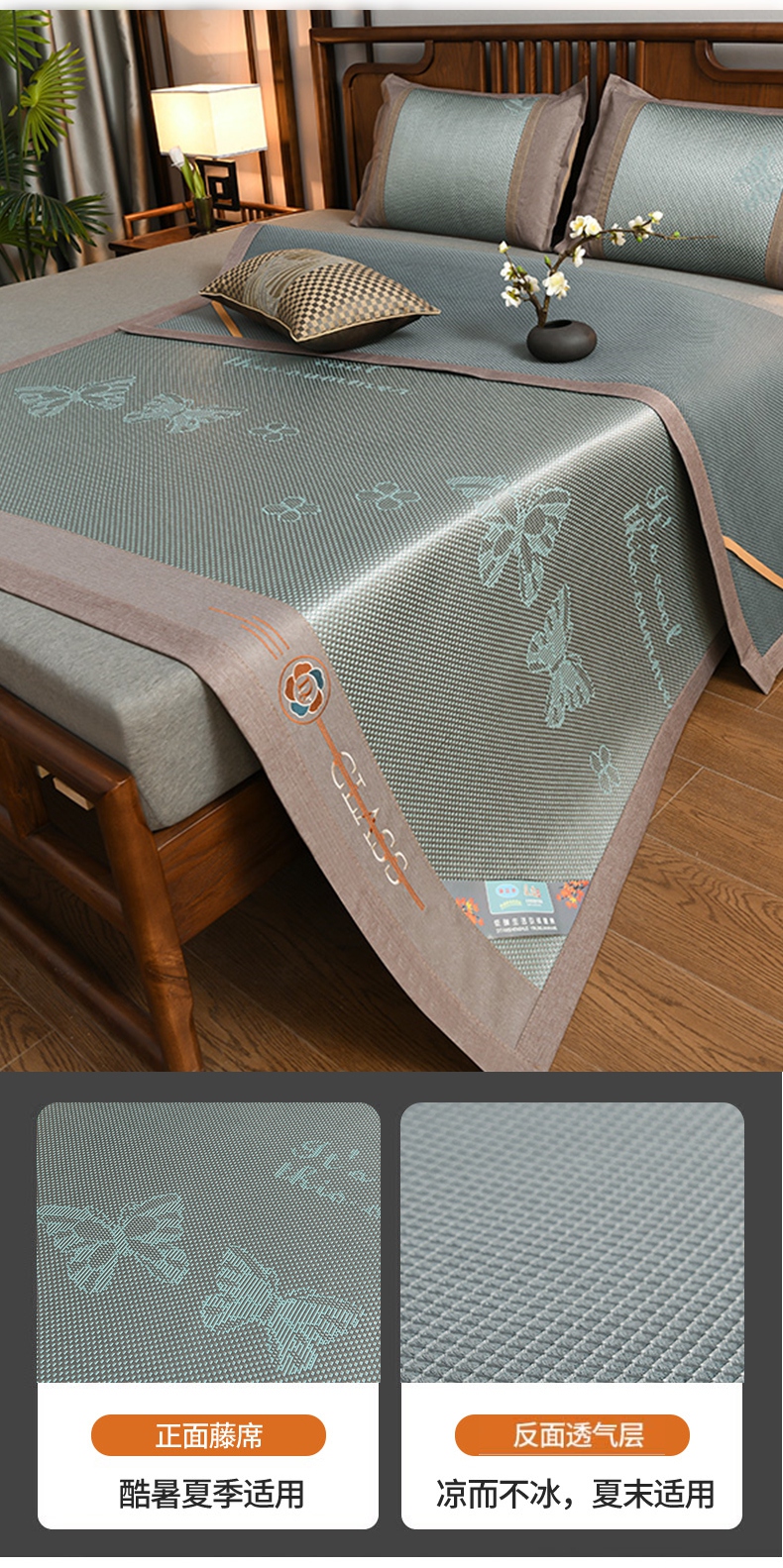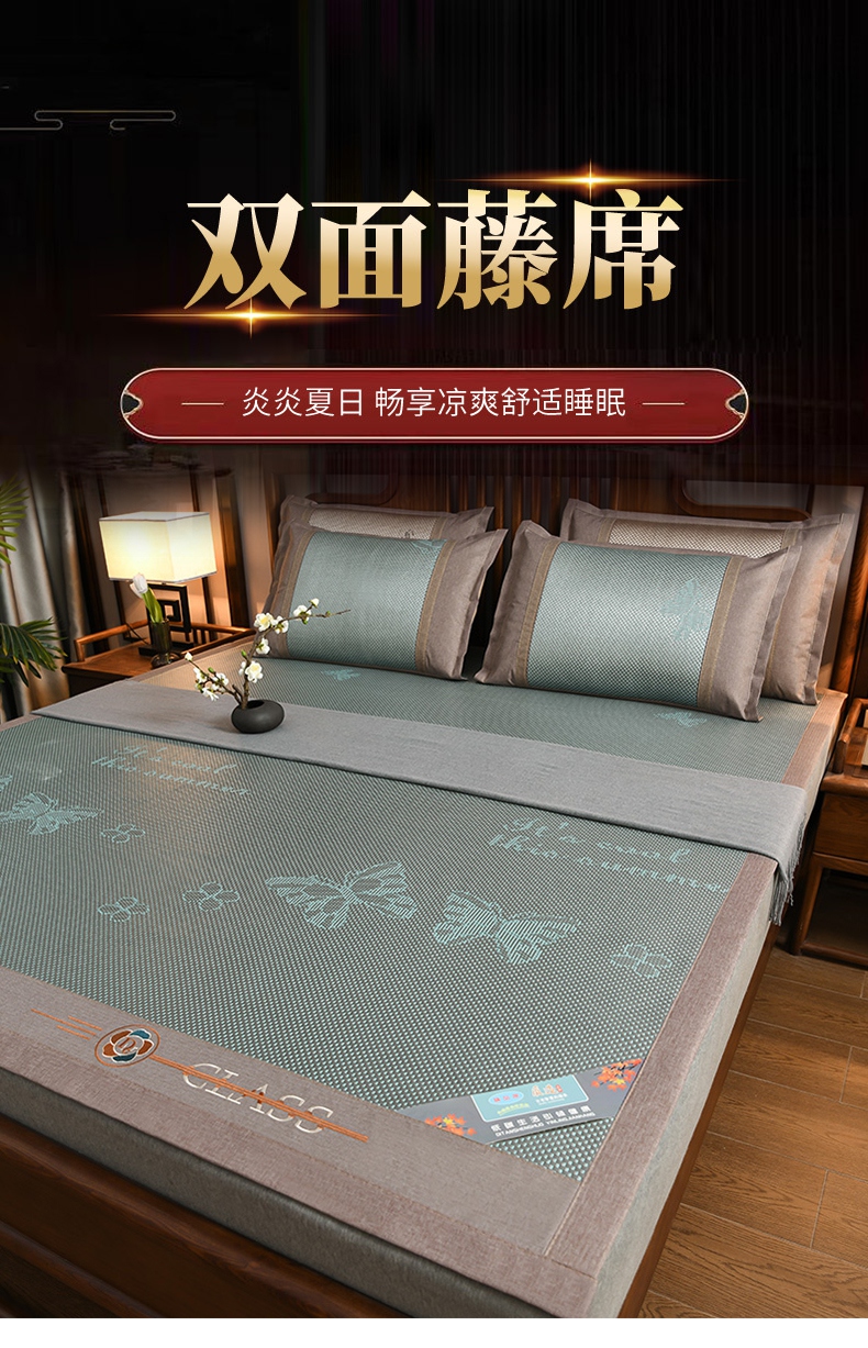 当前位置: 91家纺网 > 商品网购 > 床上用品 > 凉席 > 藤席 > 苏迪网销供货 藤席-凉席 -2026新款凉席冰藤席冰丝席凉感空调席艾草藤席-冰藤席 高端冰藤席 蝶恋 浅绿