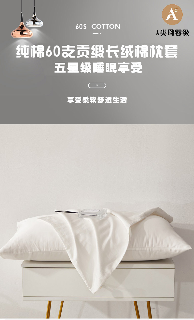 商品名称:晶缦家纺 2026新款全棉A类纯棉60支贡缎长绒棉纯色单枕套单品枕套枕套单件 琳琅-本白色