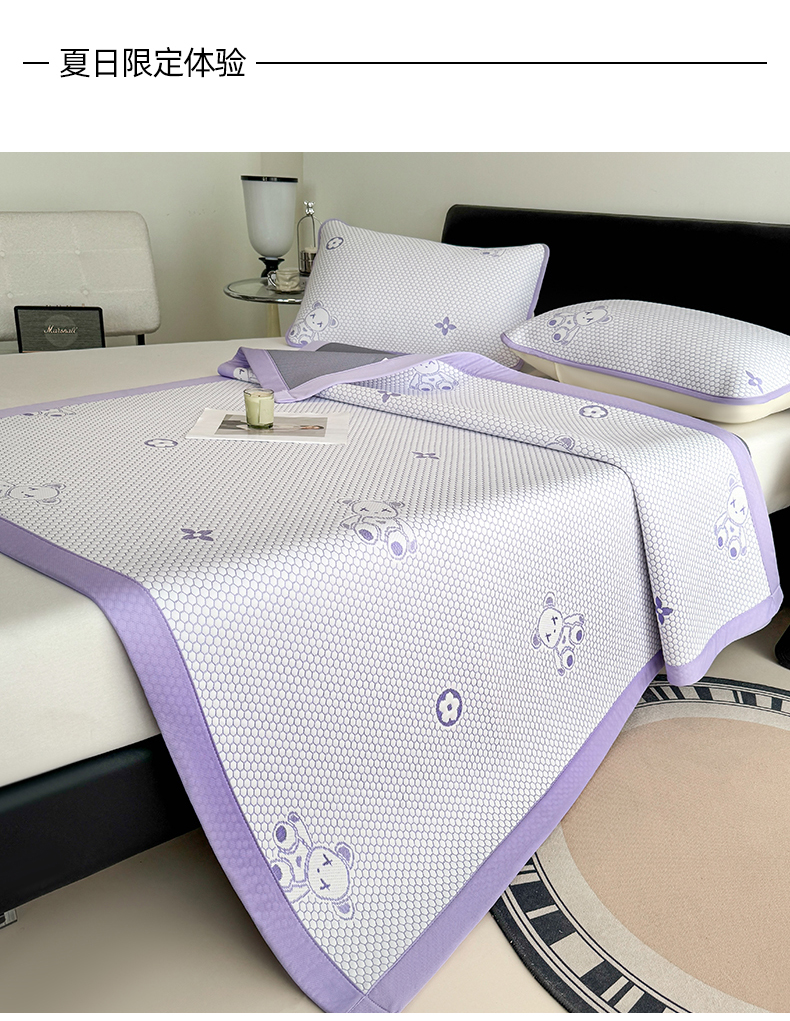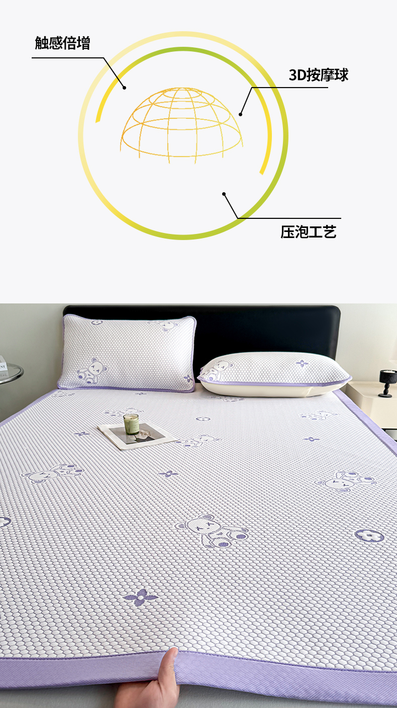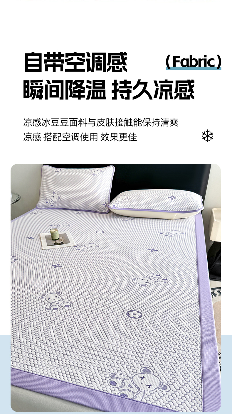 商品名称:奇丝雅 2026新款夏季A类冰豆豆凉席冰丝凉席家用冰丝席可机洗水洗单人学生宿舍上下铺寝室 抱抱熊-紫