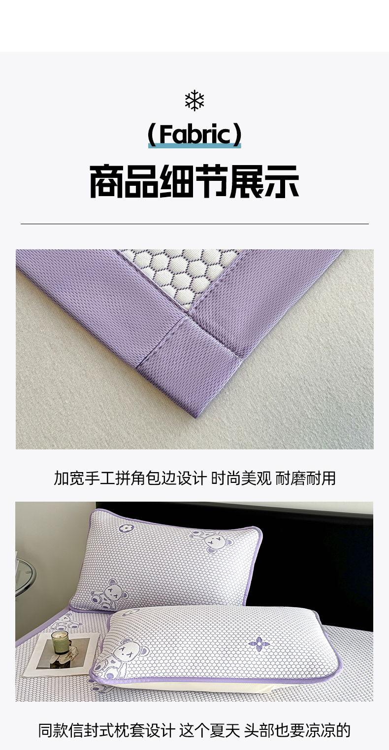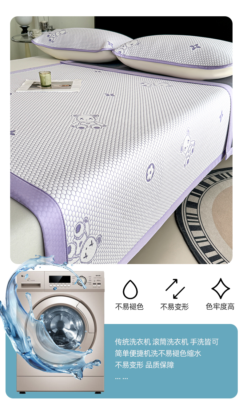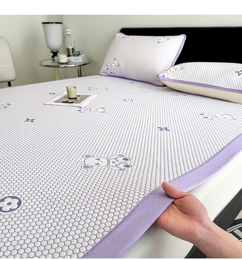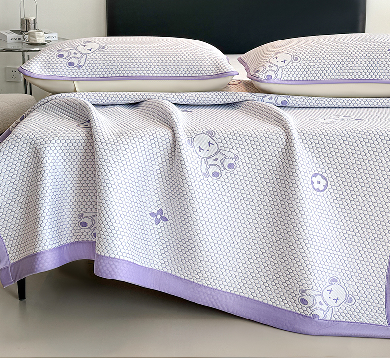 商品名称:奇丝雅 2026新款夏季A类冰豆豆凉席冰丝凉席家用冰丝席可机洗水洗单人学生宿舍上下铺寝室 抱抱熊-紫