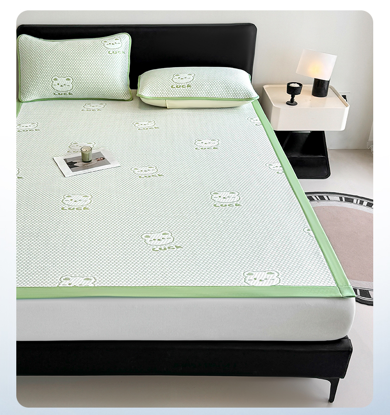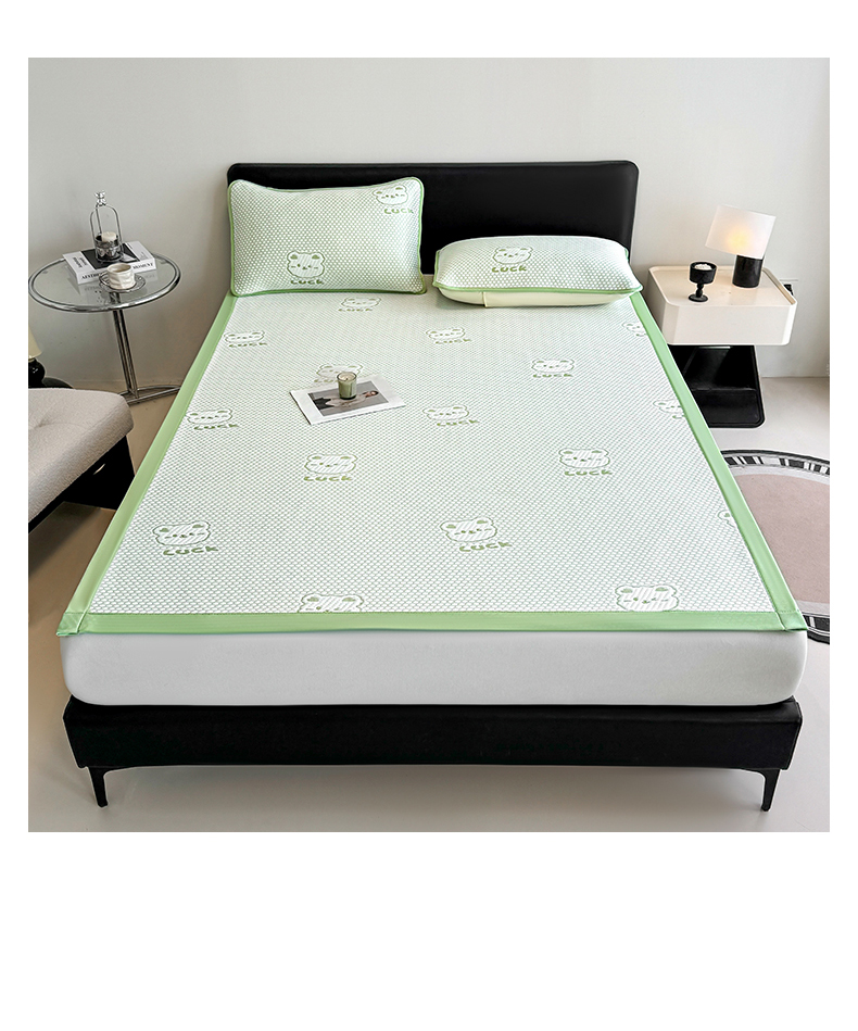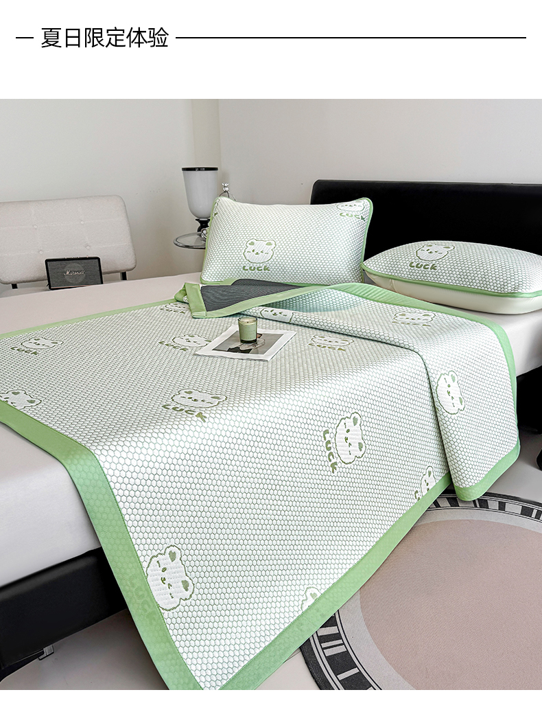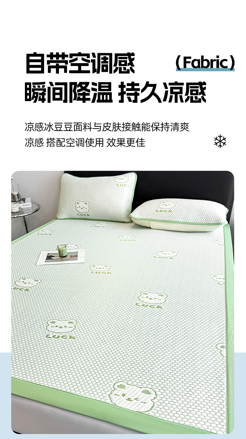 商品名称:奇丝雅 2026新款夏季A类冰豆豆凉席冰丝凉席家用冰丝席可机洗水洗单人学生宿舍上下铺寝室 小冰熊-绿