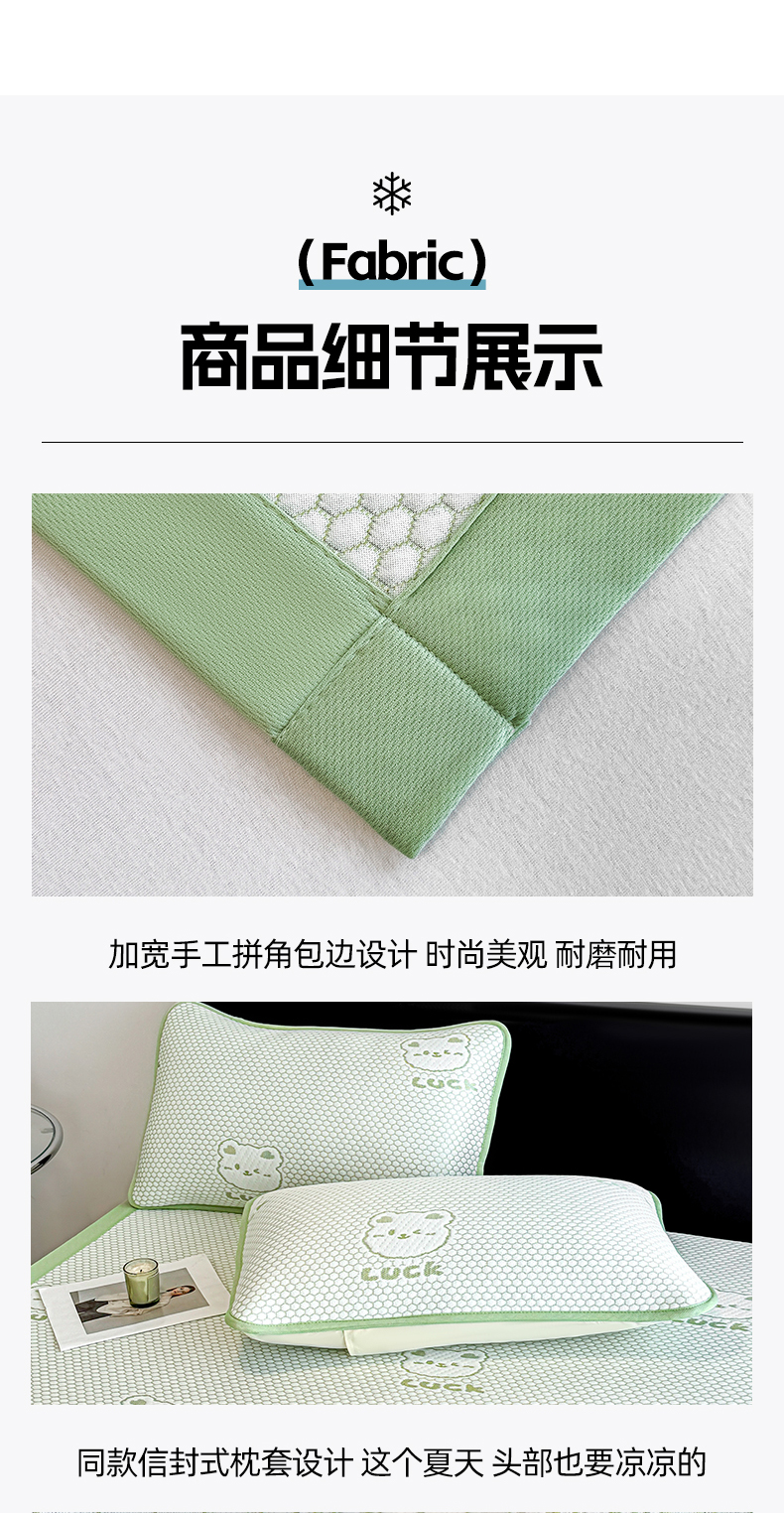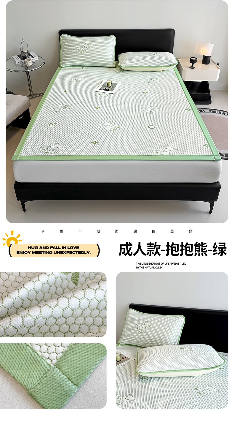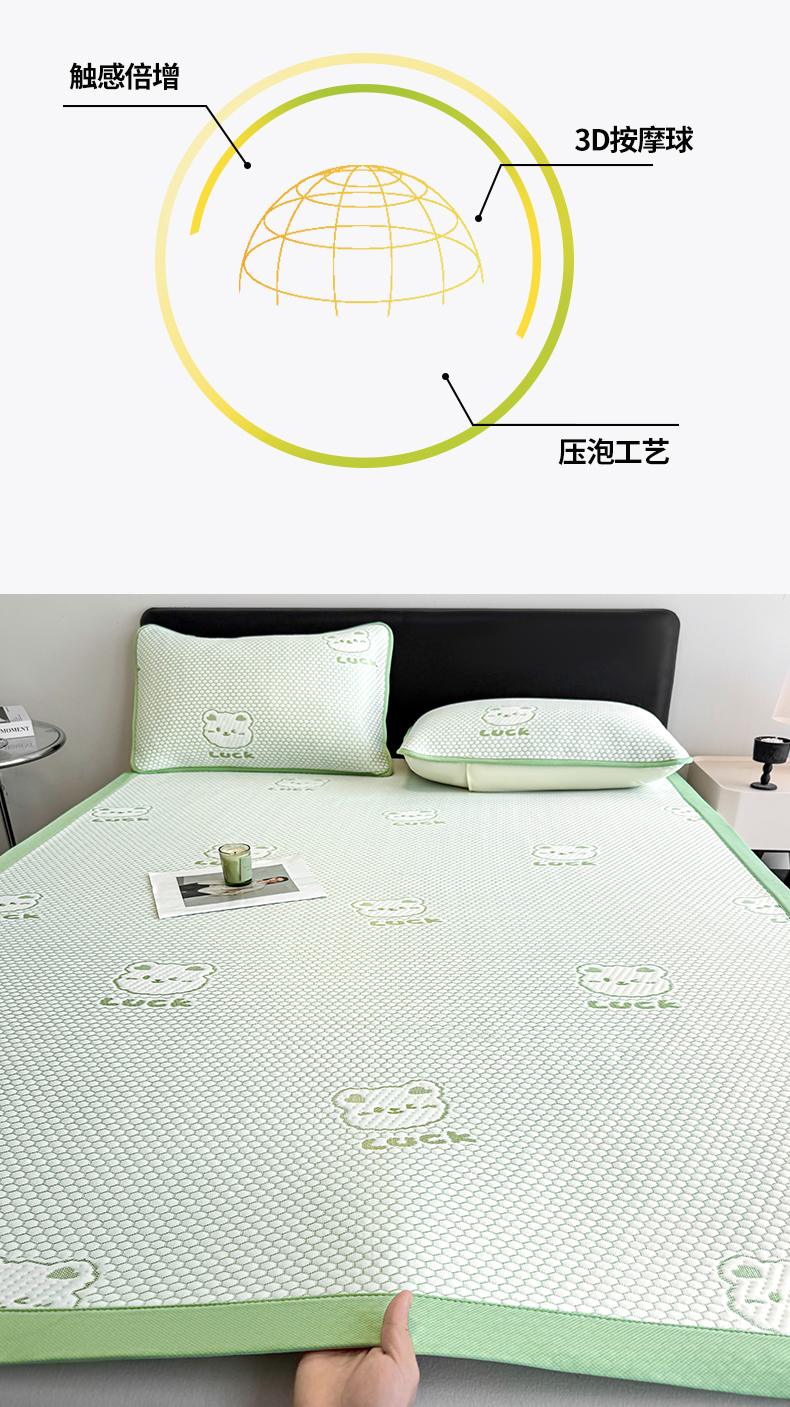 商品名称:奇丝雅 2026新款夏季A类冰豆豆凉席冰丝凉席家用冰丝席可机洗水洗单人学生宿舍上下铺寝室 小冰熊-绿