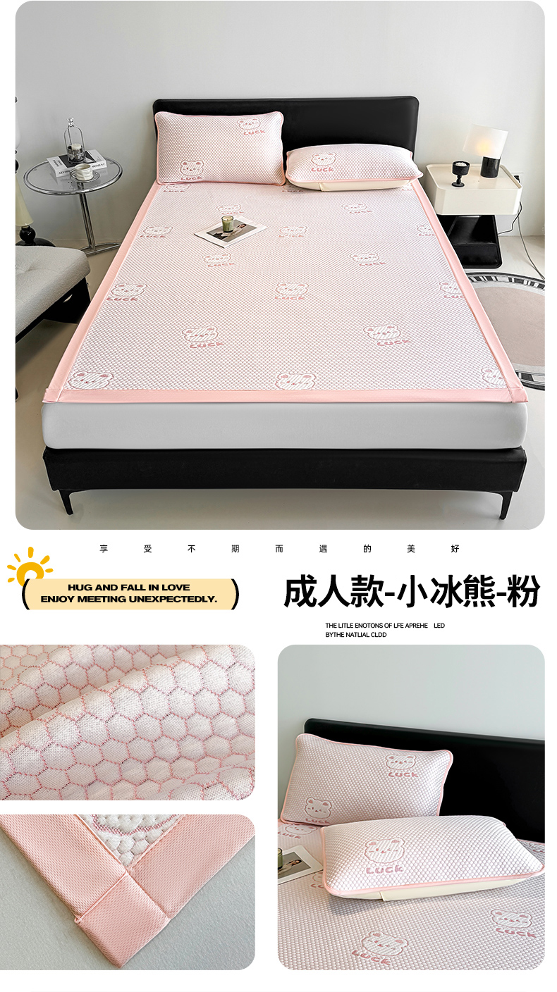 (总)奇丝雅 2026新款夏季A类真PE凉感冰豆豆凉席冰丝床单单件冰丝席可机洗单人-学生床,八宝熊-灰,八宝熊-咖,八宝熊-蓝,八宝熊-绿,八宝熊-粉