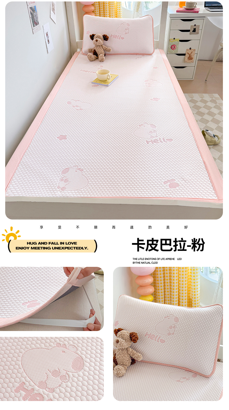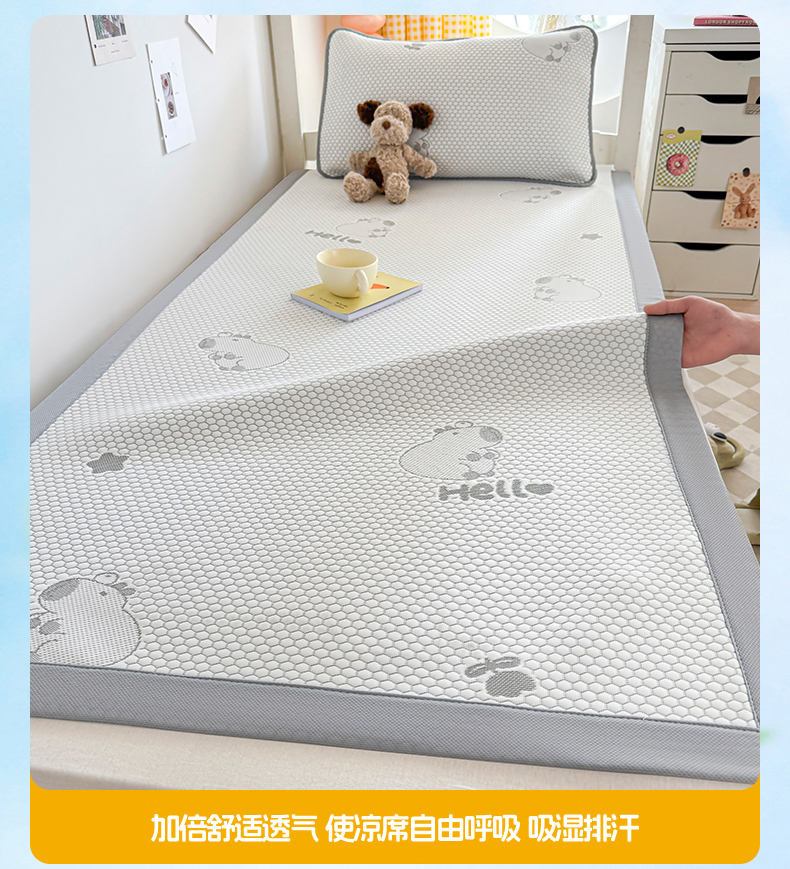 (总)奇丝雅 2026新款夏季A类印花冰豆豆凉席三明治透气网冰丝凉席可机洗学生宿舍上下铺学生床,巴比兔,抱抱熊,饼干熊,海洋世界,卡皮巴拉,蘑菇乐园,甜甜圈,兔宝贝,维尼熊,小企鹅,熊猫家园,叶语