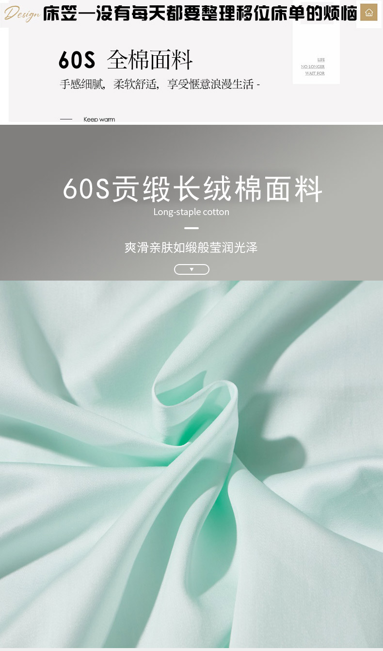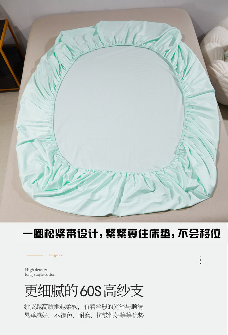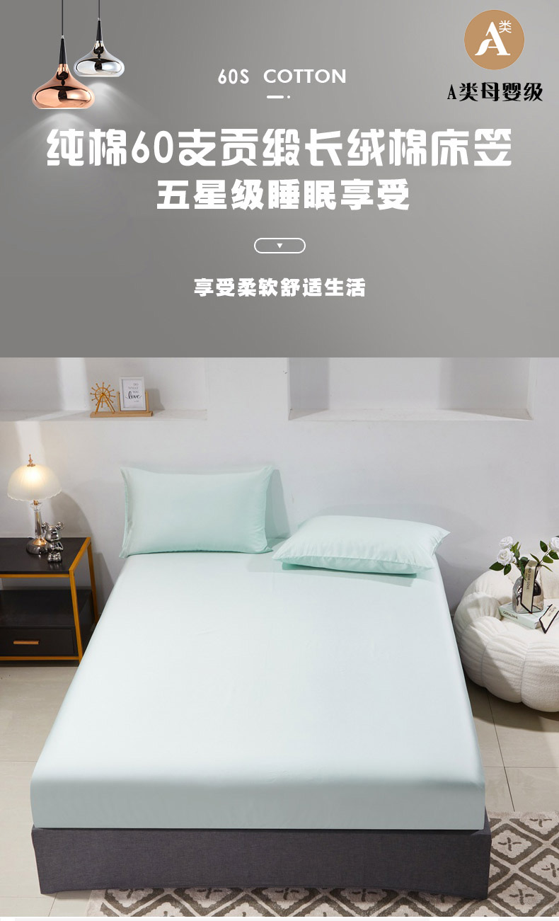 • 91家纺网 家纺一手货源 找家纺 晶缦家纺 2026新款全棉A类纯棉60支贡缎长绒棉纯色单床笠单品床笠床笠单件 琳琅-天青绿