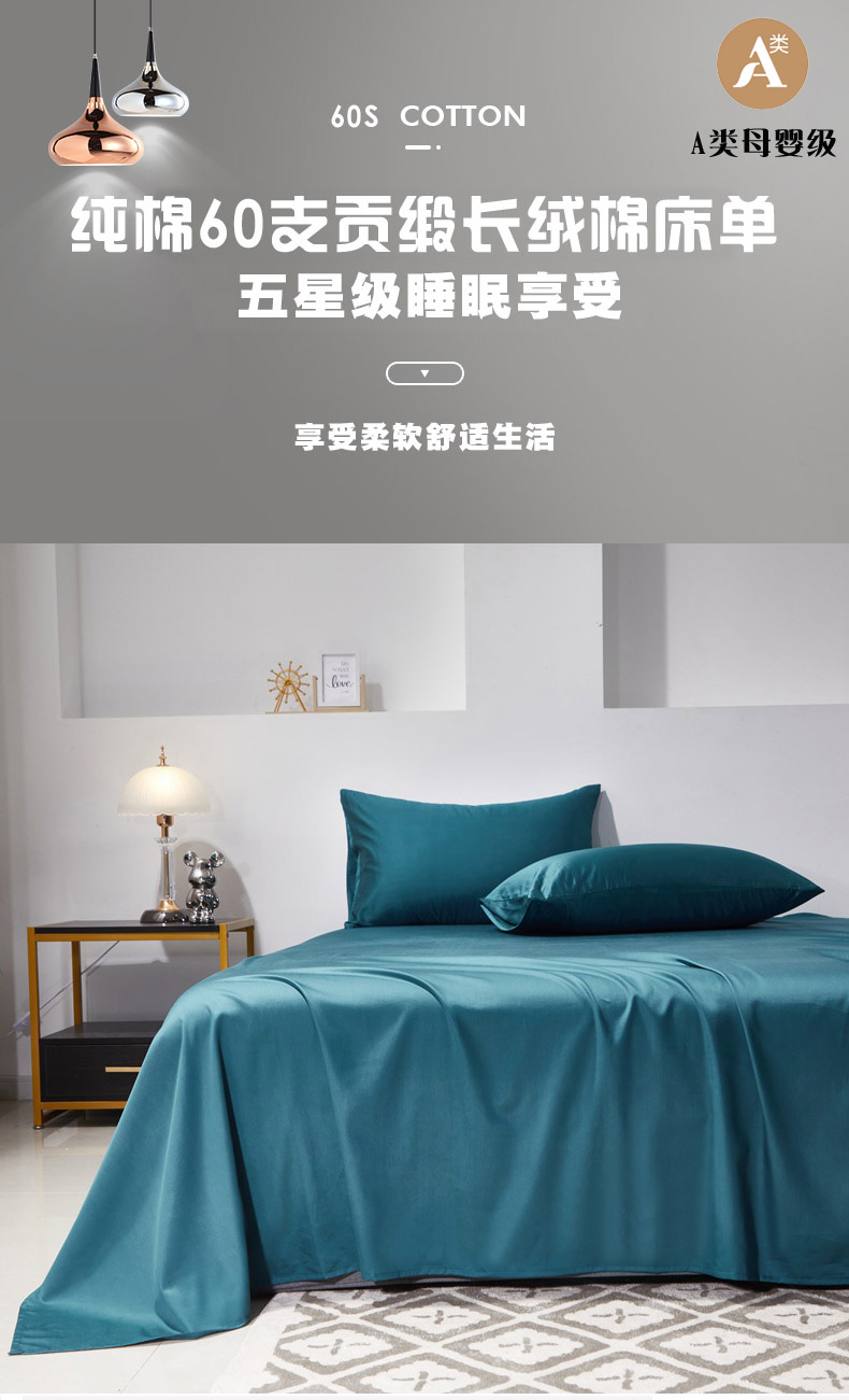• 91家纺网 家纺一手货源 找家纺 晶缦家纺 2026新款全棉A类纯棉60支贡缎长绒棉纯色单床单单品床单床单单件 琳琅-猫眼绿
