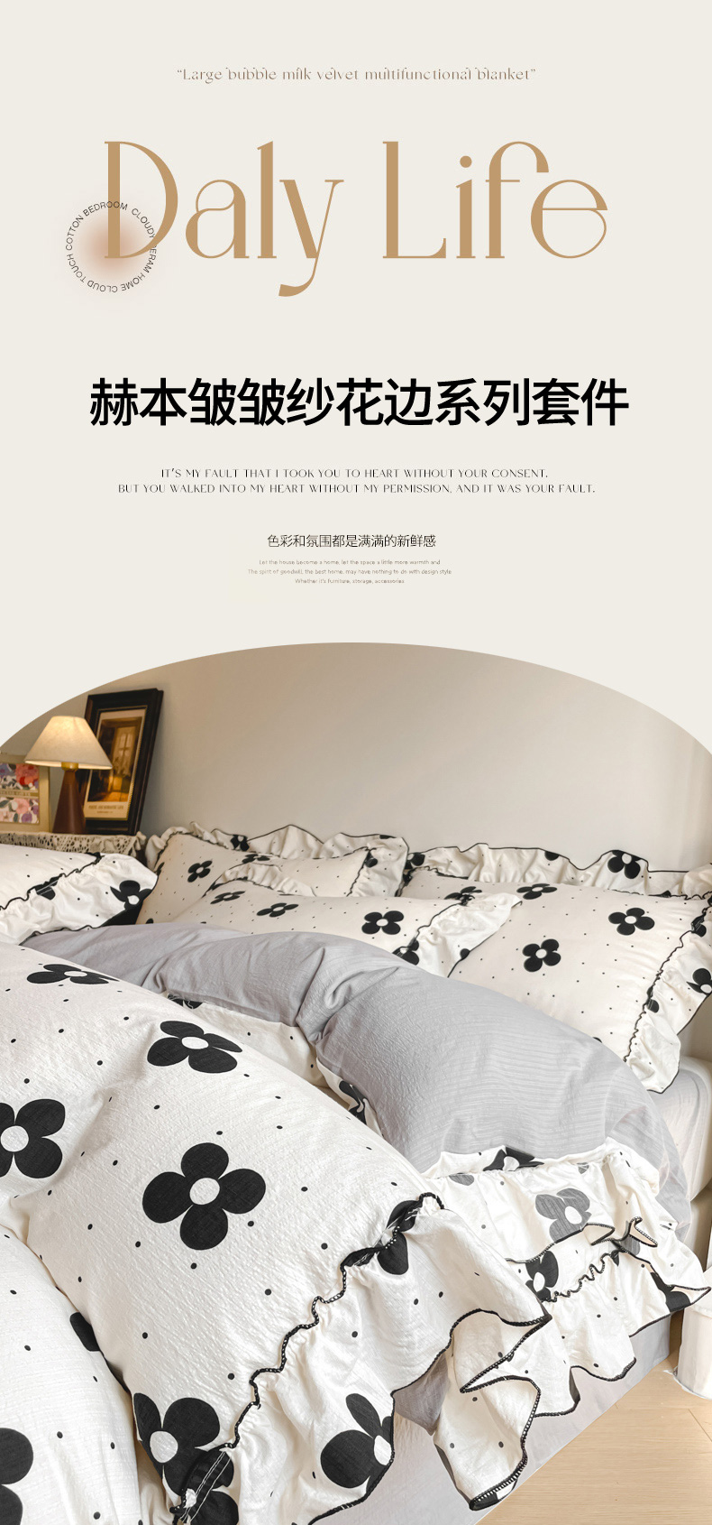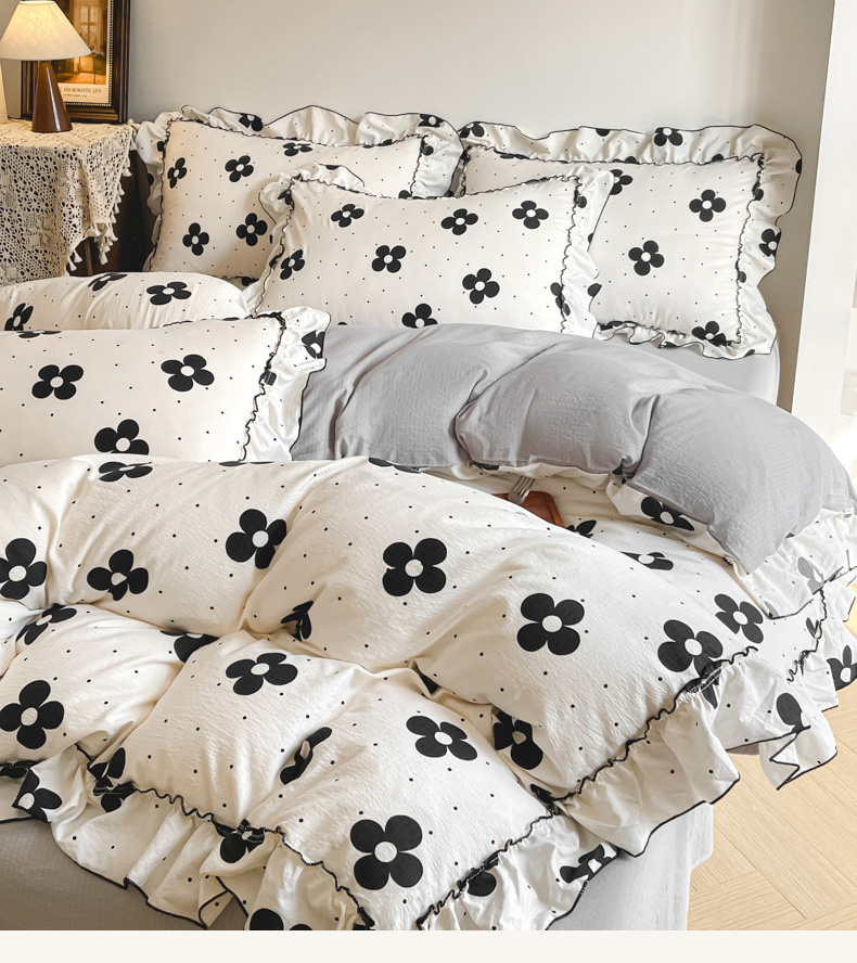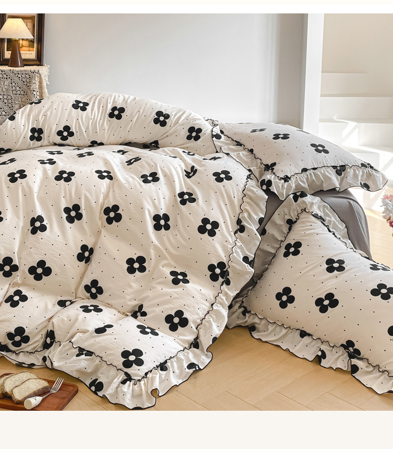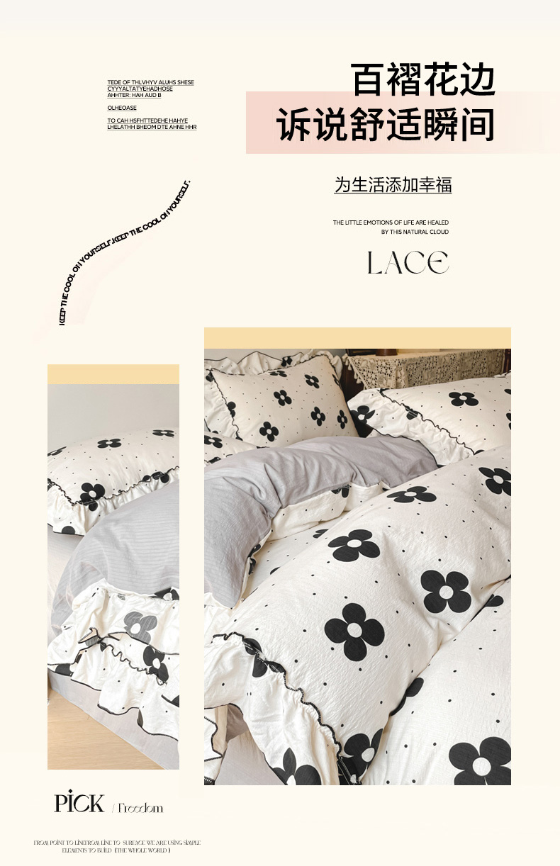 当前位置: 91家纺网 > 商品网购 > 床品套件 > 四件套 > 化纤普通四件套 > 柒月家居 2026新款法式赫本皱皱纱花边四件套 宝格丽曼