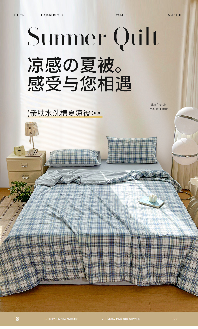 商品名称:纽缦家纺 2026新款水洗棉简约格子风夏被 简意-粉