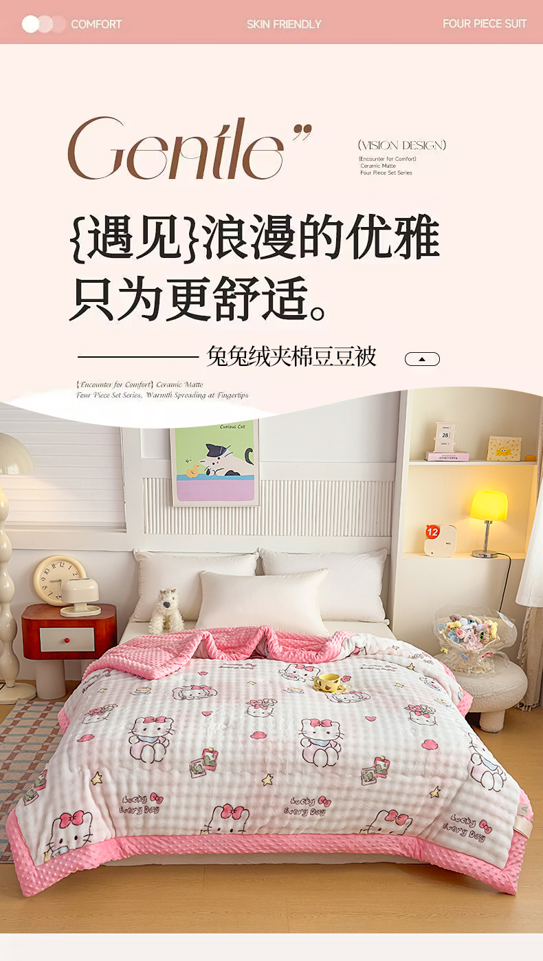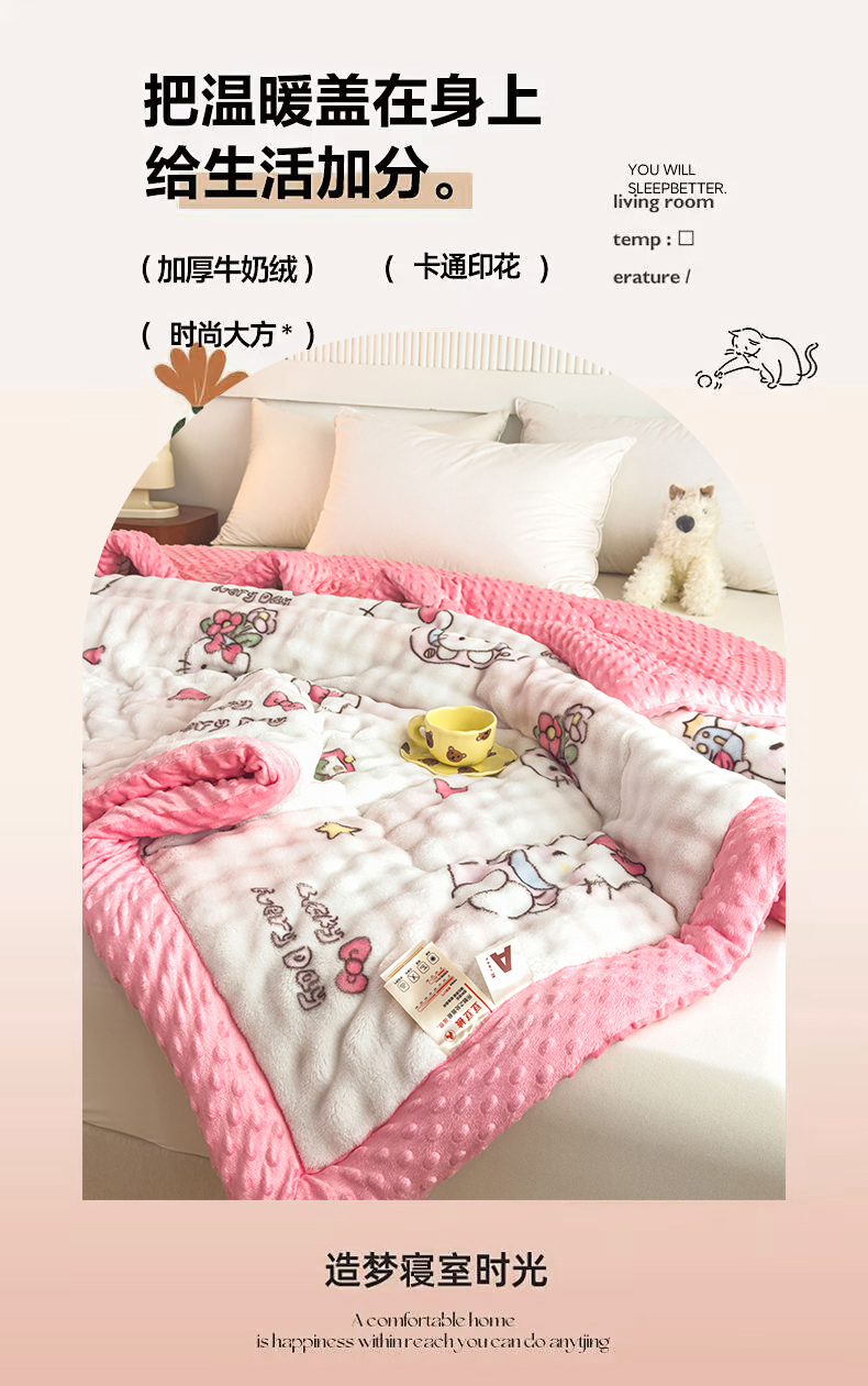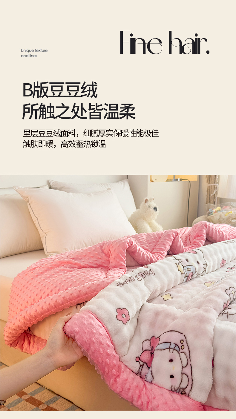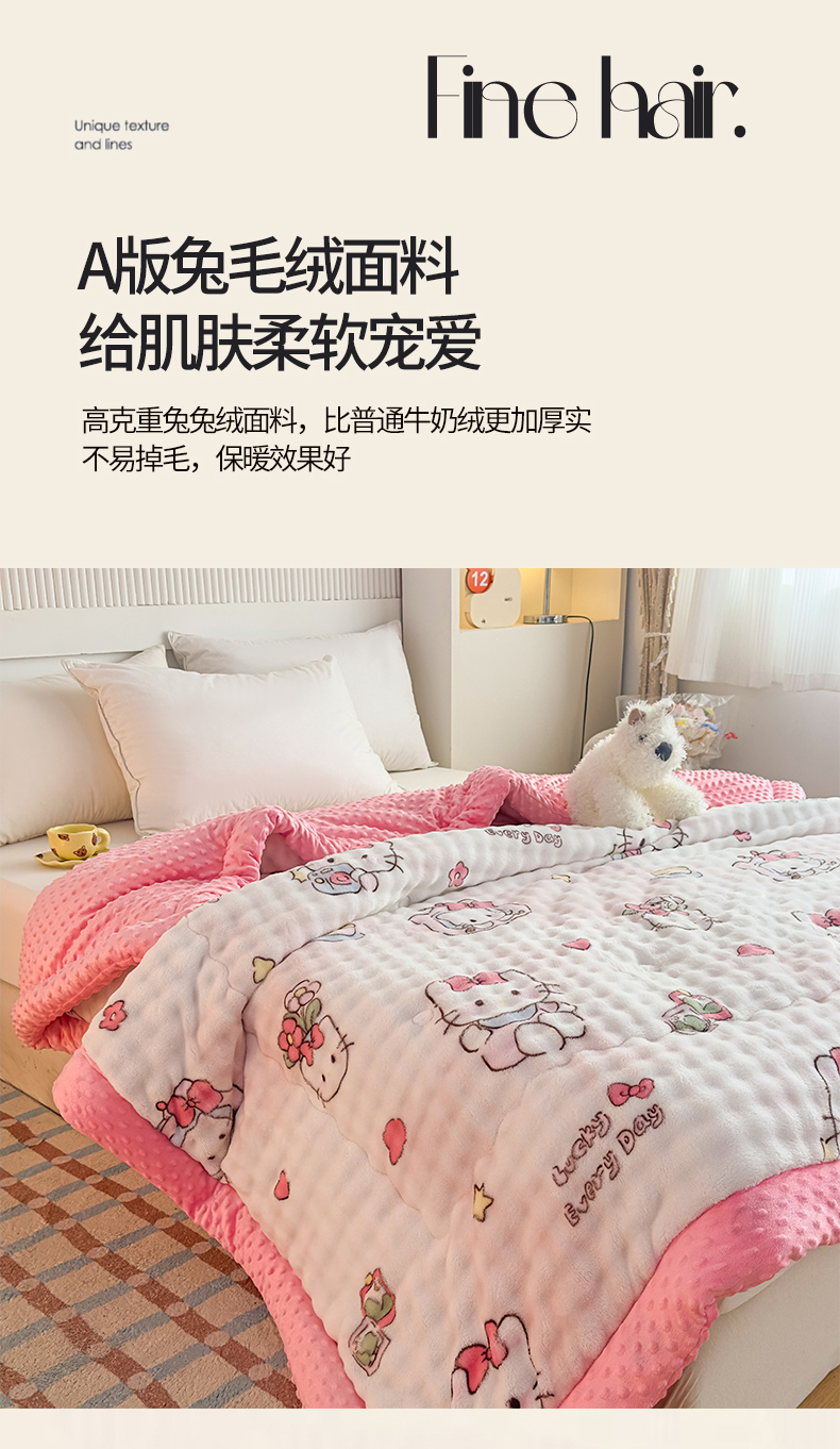 • 91家纺网 家纺一手货源 找家纺 优雅星家纺 2026新款亲肤舒适兔毛绒豆豆绒冬被 凯特猫