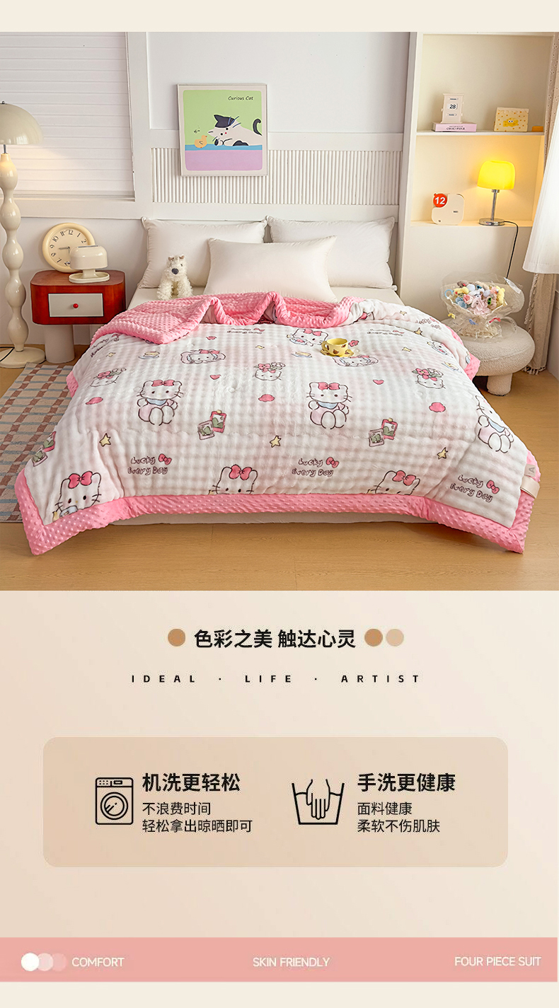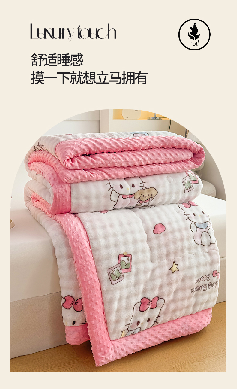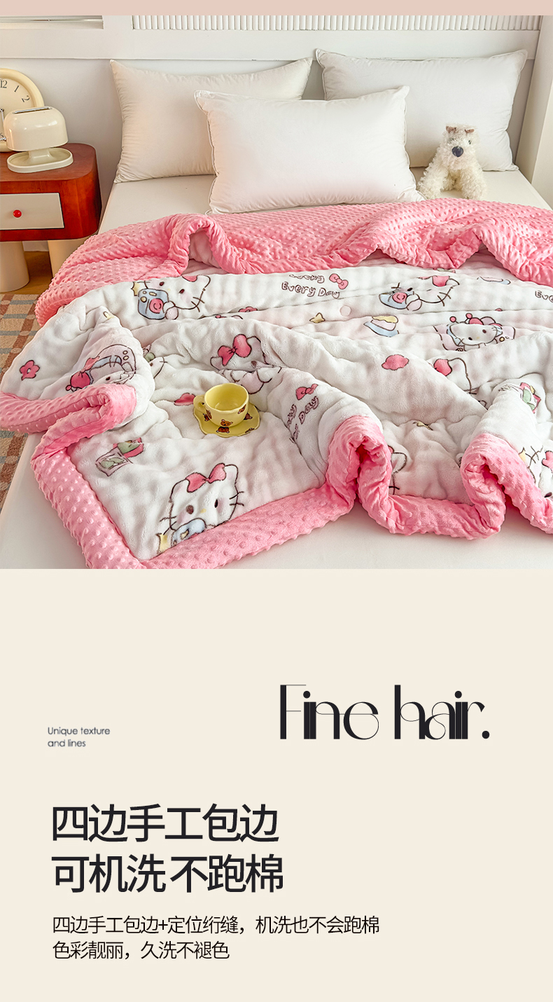 • 91家纺网 家纺一手货源 找家纺 优雅星家纺 2026新款亲肤舒适兔毛绒豆豆绒冬被 凯特猫