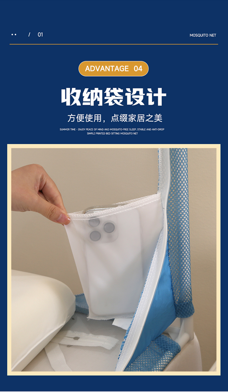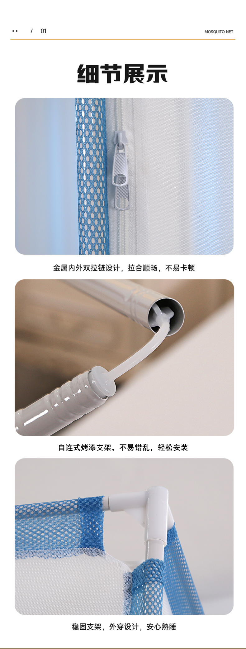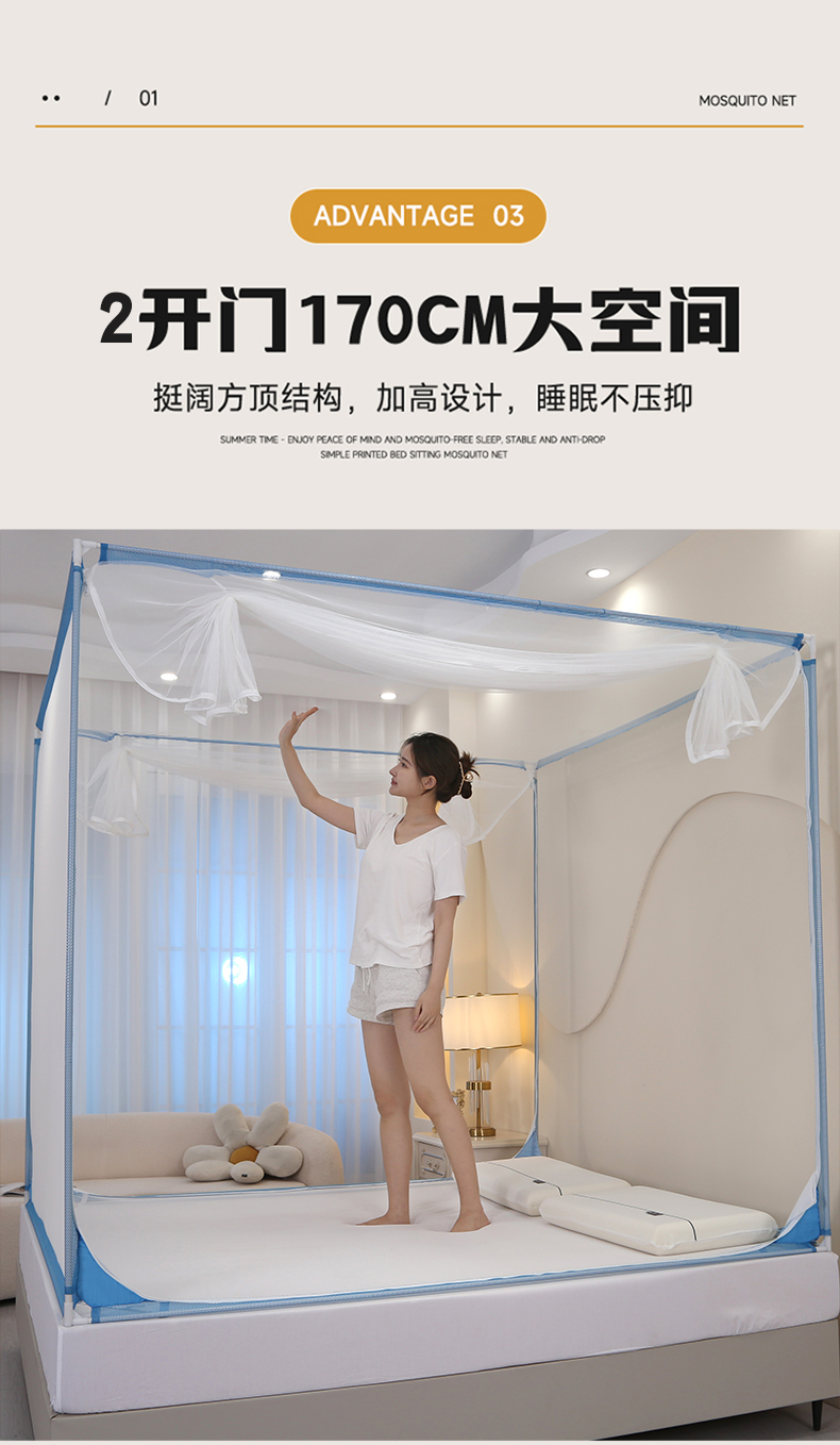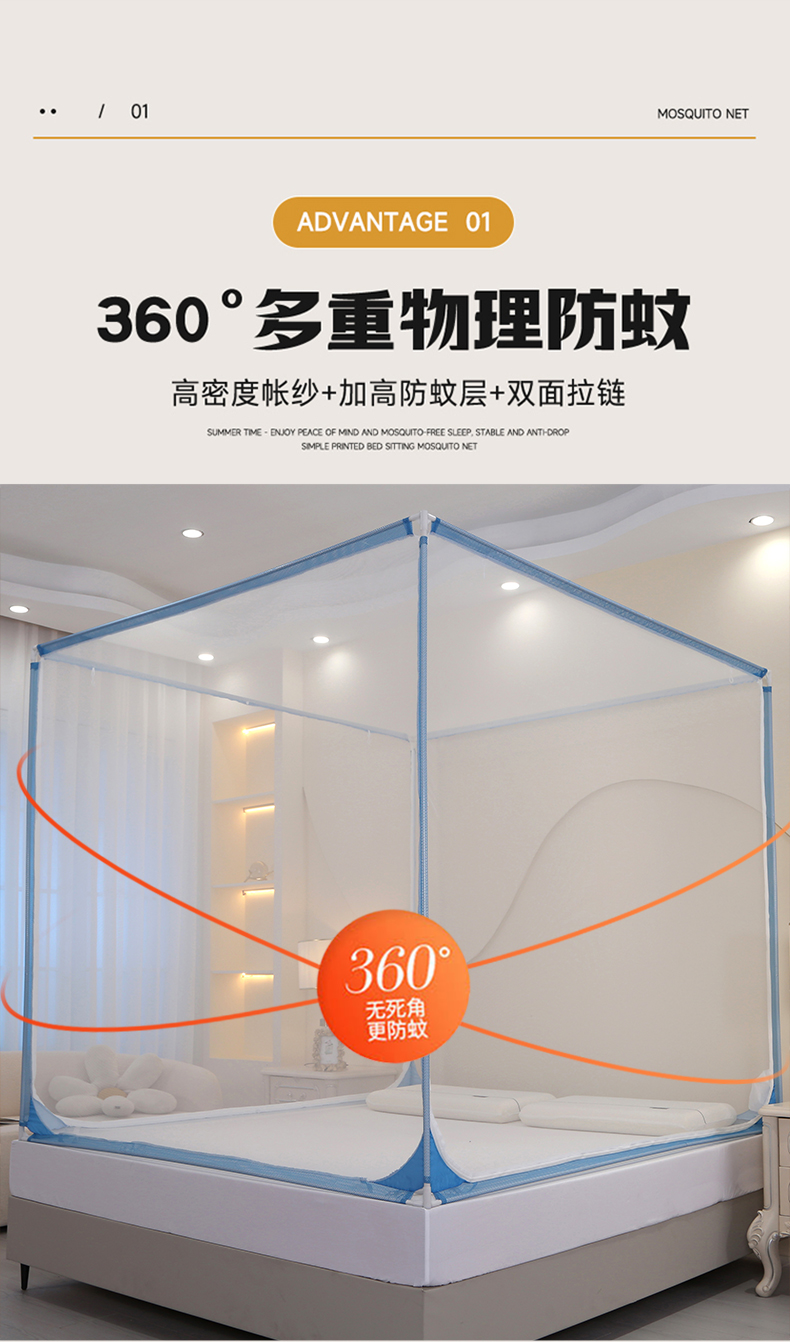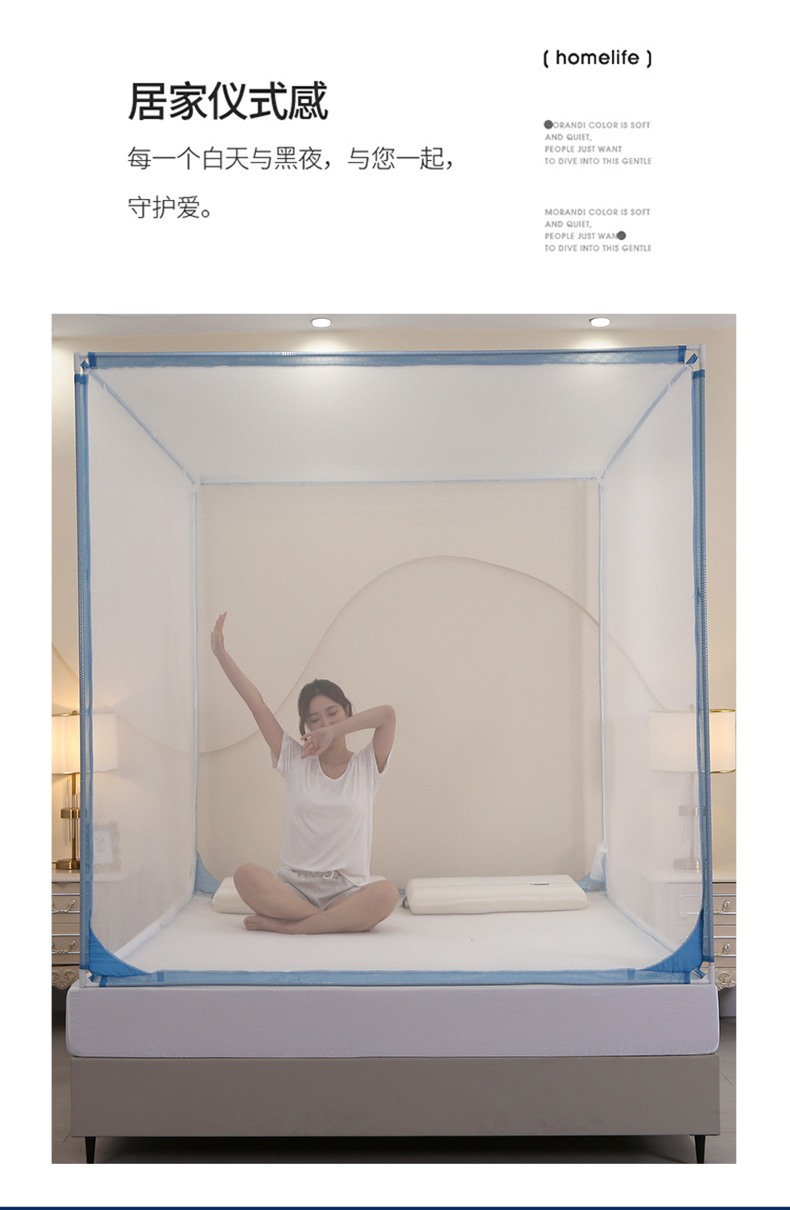当前位置: 91家纺网 > 商品网购 > 床上用品 > 蚊帐 > 坐床式蚊帐 > 豪梦园蚊帐工厂店 2026新款家用方顶坐床支架印花蚊帐 蓝色边-双开门