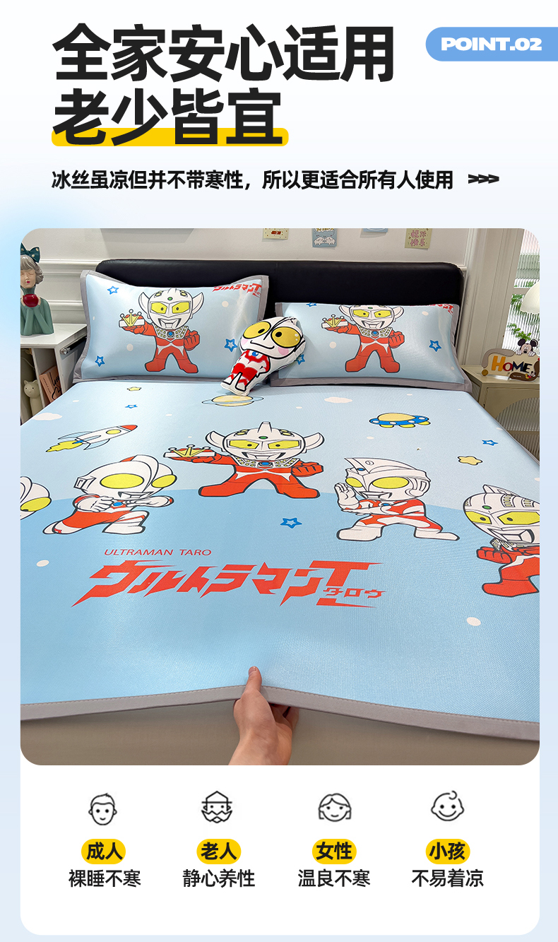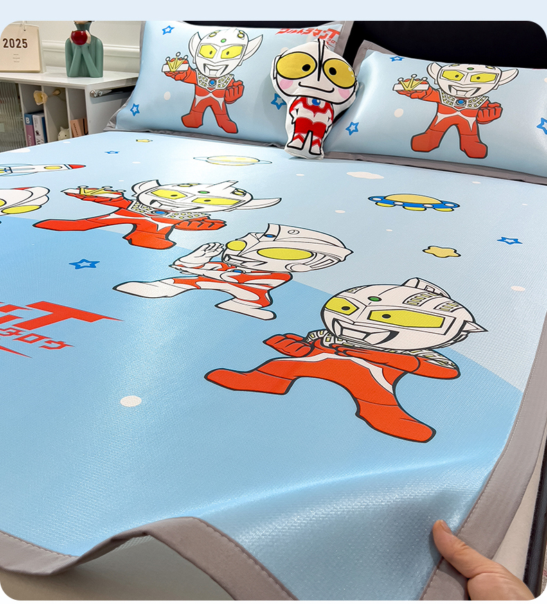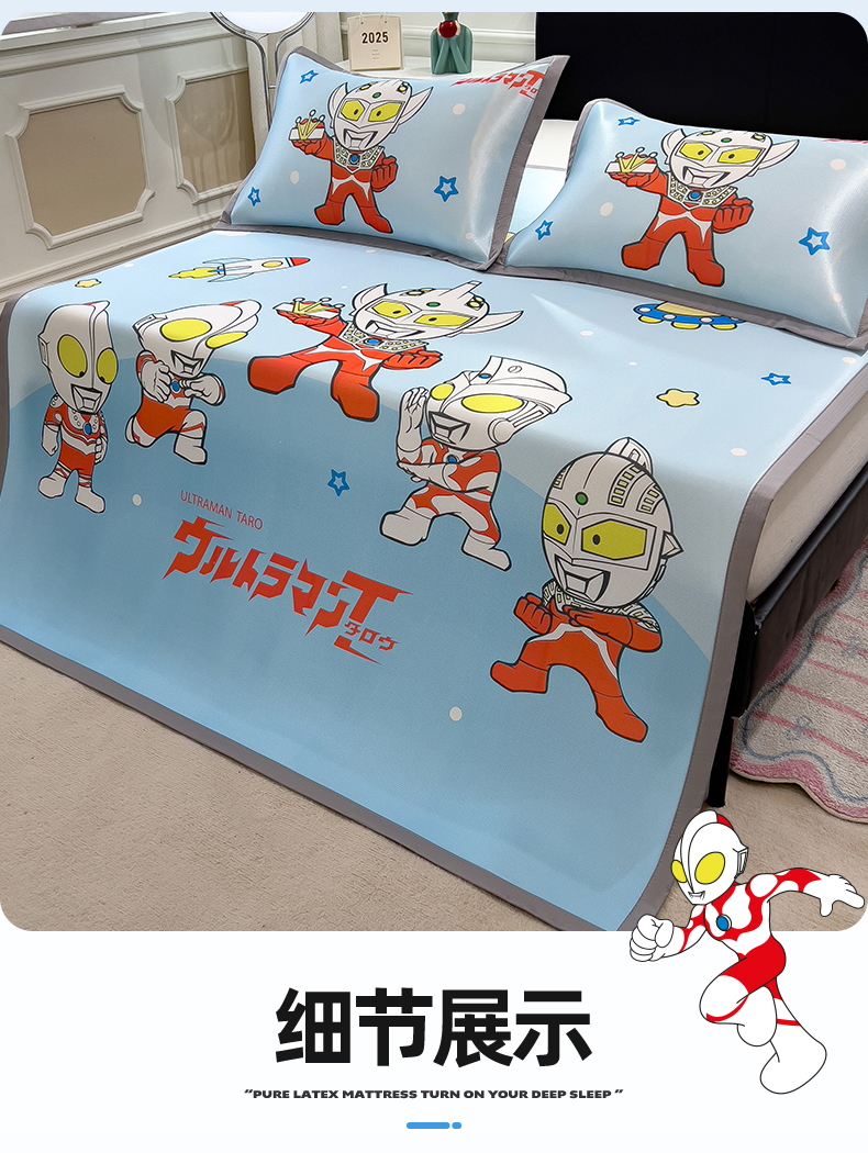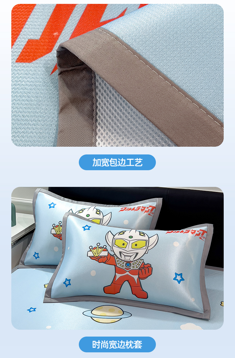 商品名称:兄弟坊 2026新款正版授权A类大版卡通烫光冰丝凉席冰丝席 奥特联盟