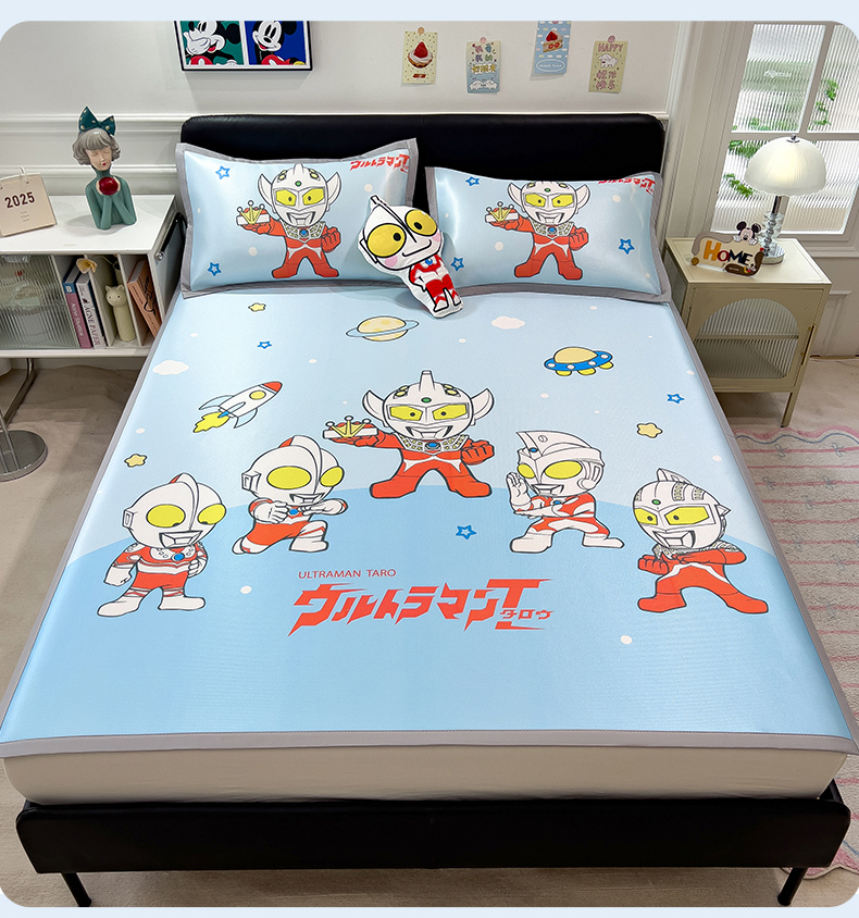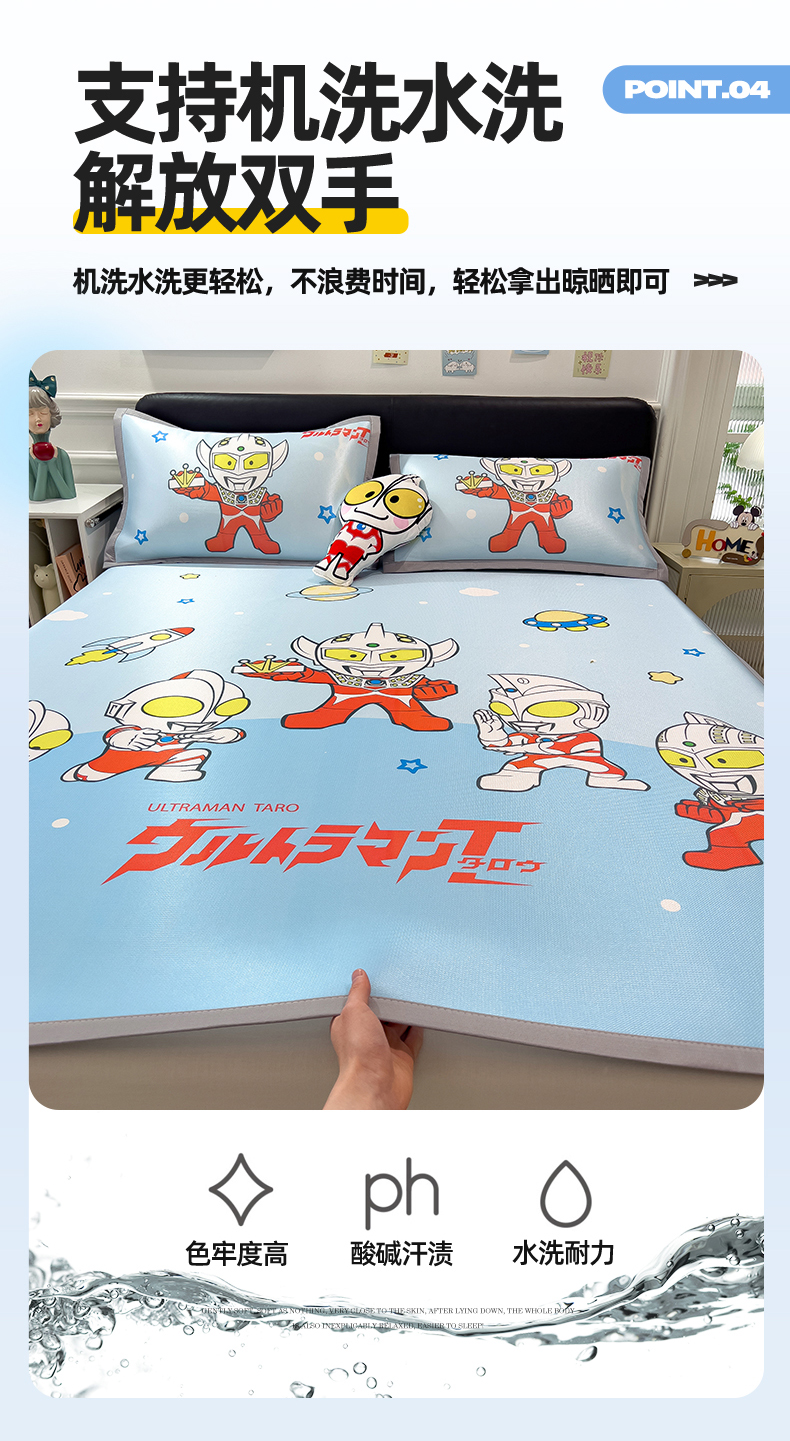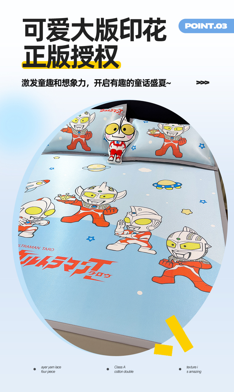 商品名称:兄弟坊 2026新款正版授权A类大版卡通烫光冰丝凉席冰丝席 奥特联盟