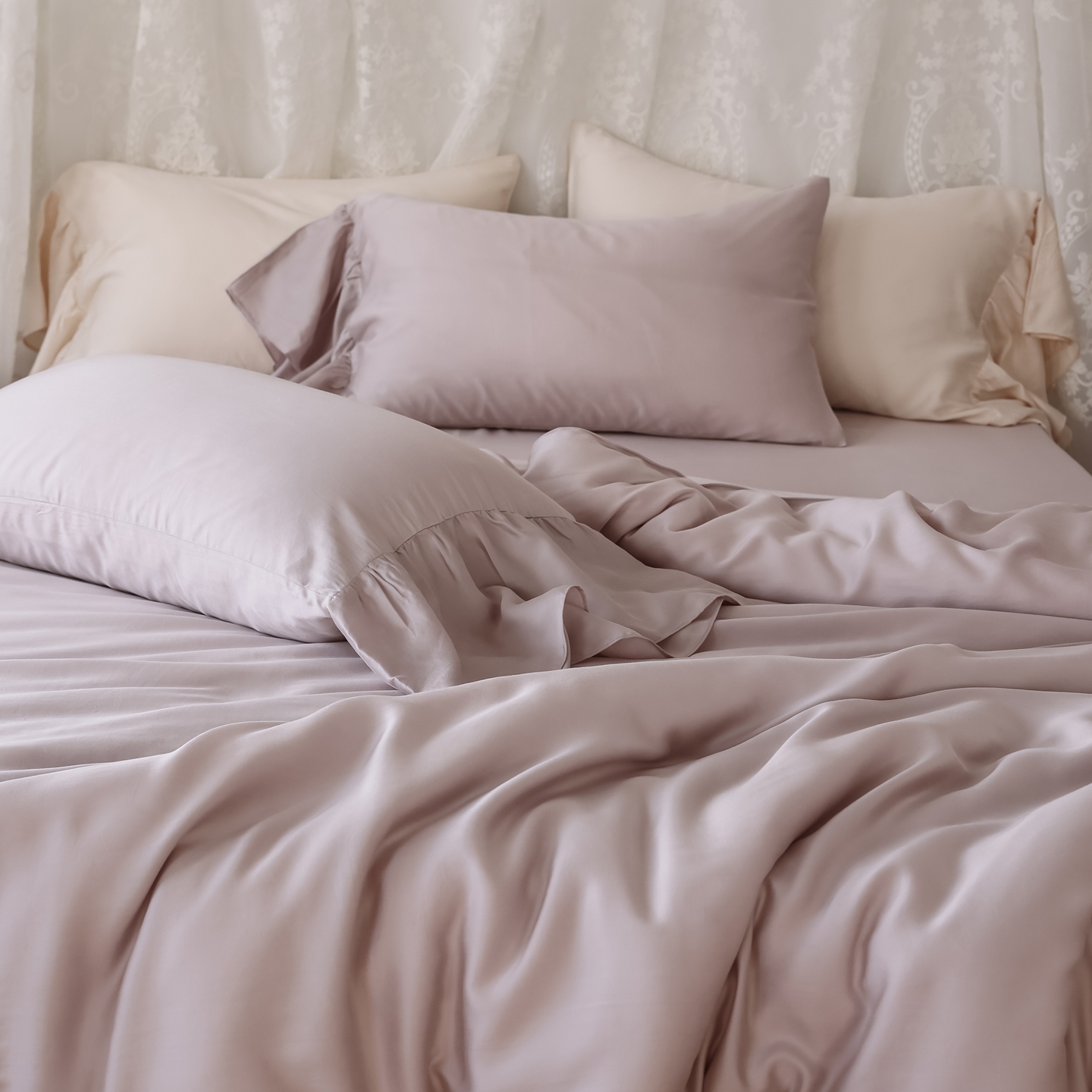 (总)初拾 2026新款60支水洗兰精天丝”慵懒风“四件套-美人鱼,美人鱼-玫瑰浅紫,美人鱼-棉花糖白,美人鱼-茉香奶绿,美人鱼-山茶烟粉
