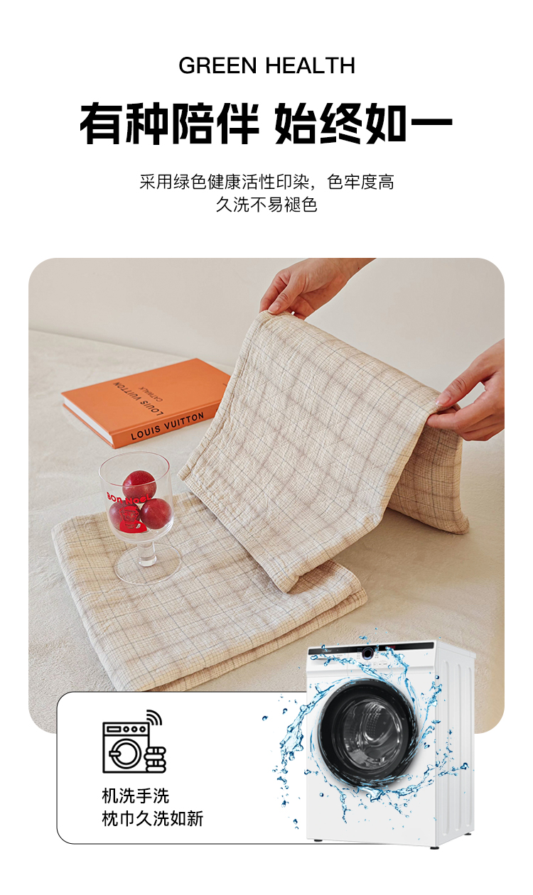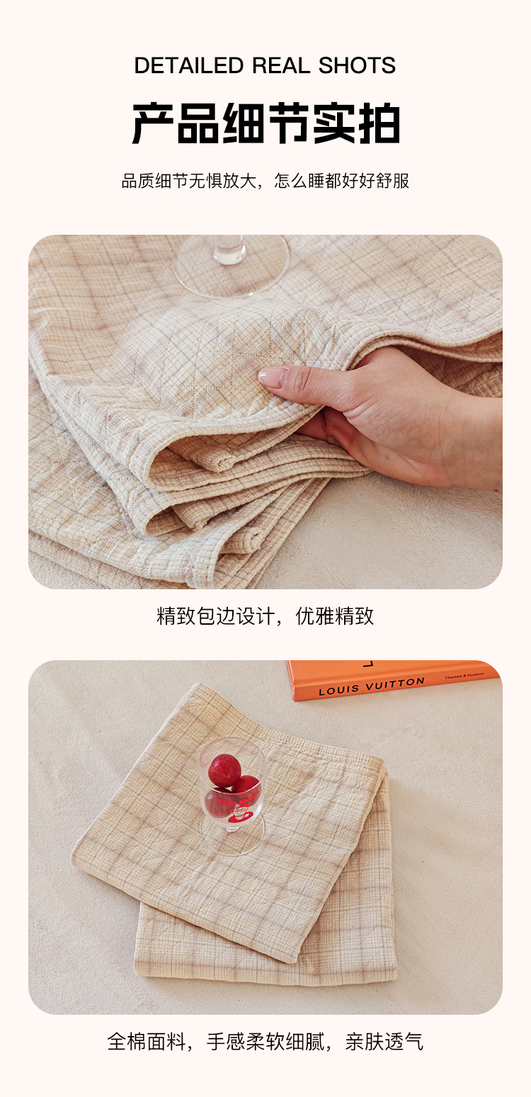 (总)沐瑟家纺 2025新款简约风多功能纱布盖毯纱布毯子毛巾被床盖沙发巾单毯枕巾枕套三件套,H本色,H橙色,H咖色,大马士革本色