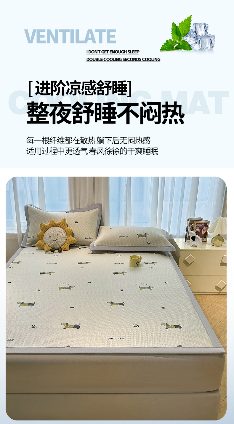 商品名称:居易简 2026新款卡通实拍小红书爆款凉豆豆凉席100%PE 乙纶凉感可水洗床席席子-床席款 腊肠小狗
