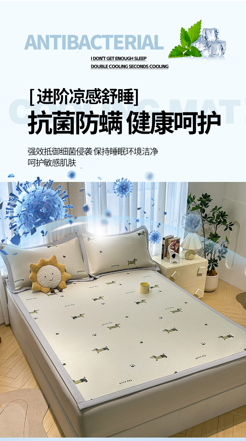 (总)居易简2026新款卡通实拍小红书爆款凉豆豆凉席100%PE 乙纶凉感可水洗床席席子-床笠款,腊肠小狗,粉独角兽,可爱布布,蓝蓝小熊,梦境KT,条纹小象