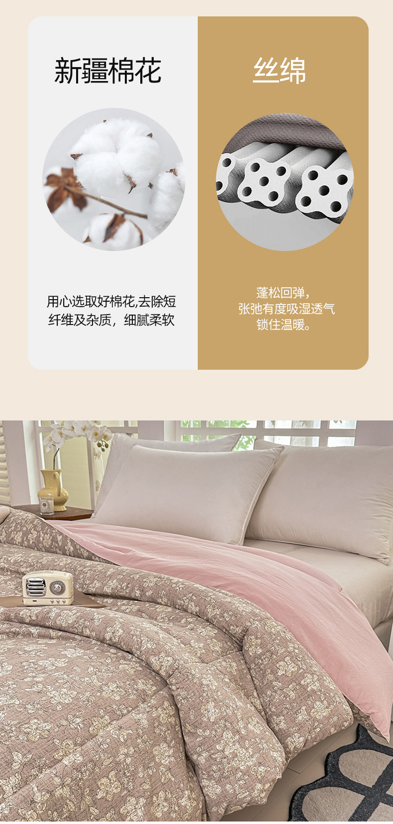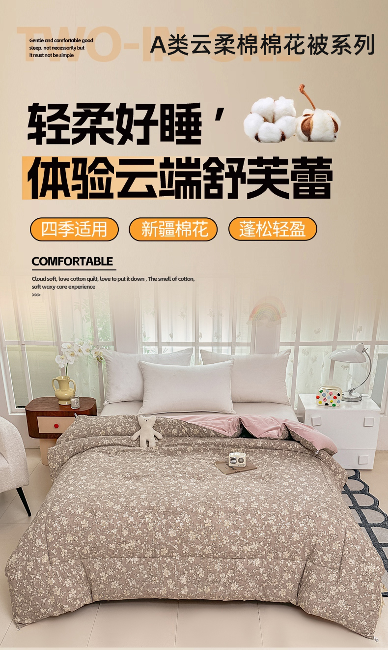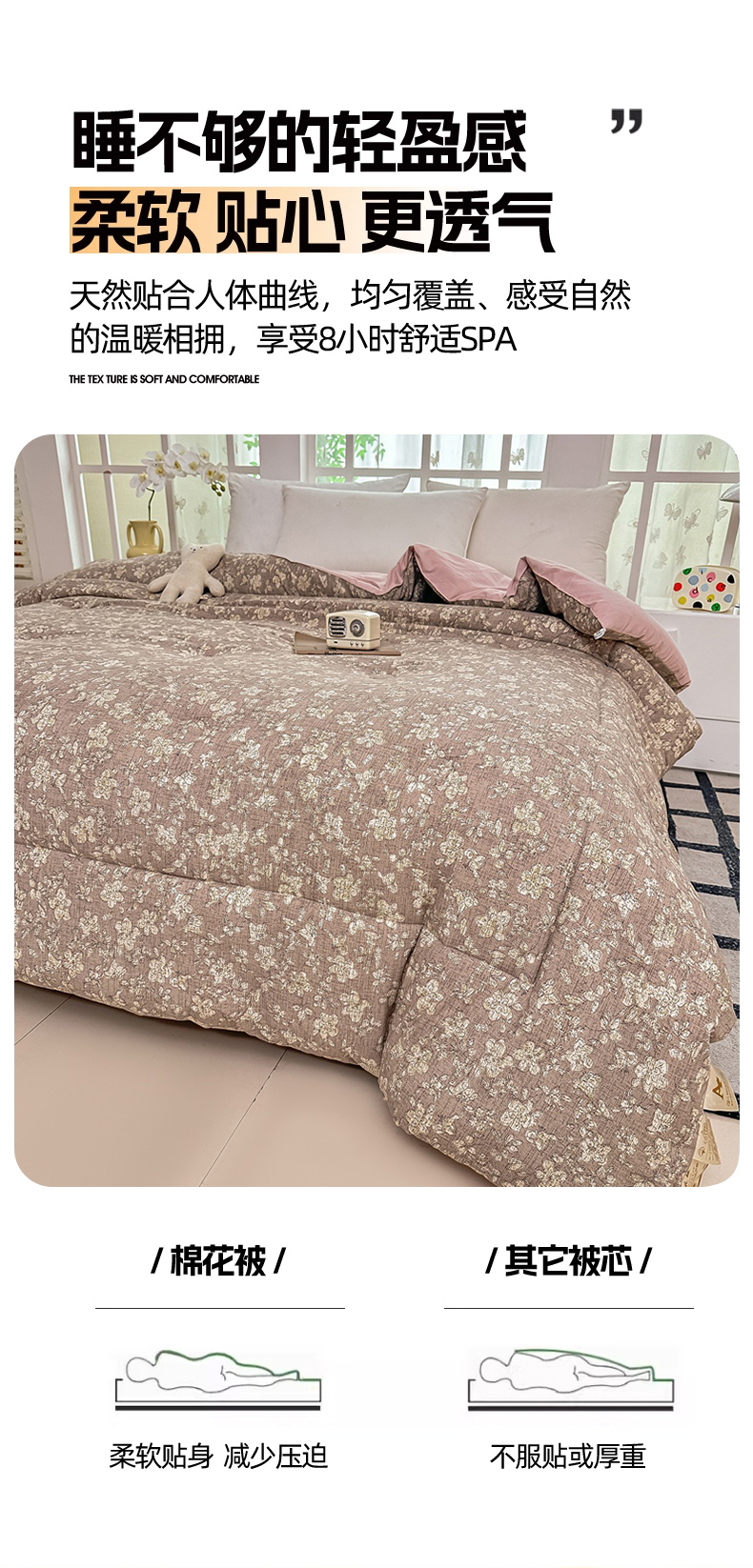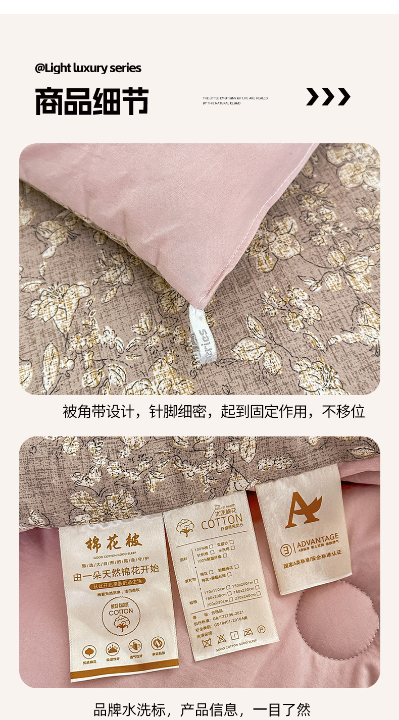 • 91家纺网 家纺一手货源 找家纺 好欣怡家纺 2026新款110克云柔棉被子50%新疆棉花夏被冬被被芯直播首选(含检测报告) 花漾-夏被