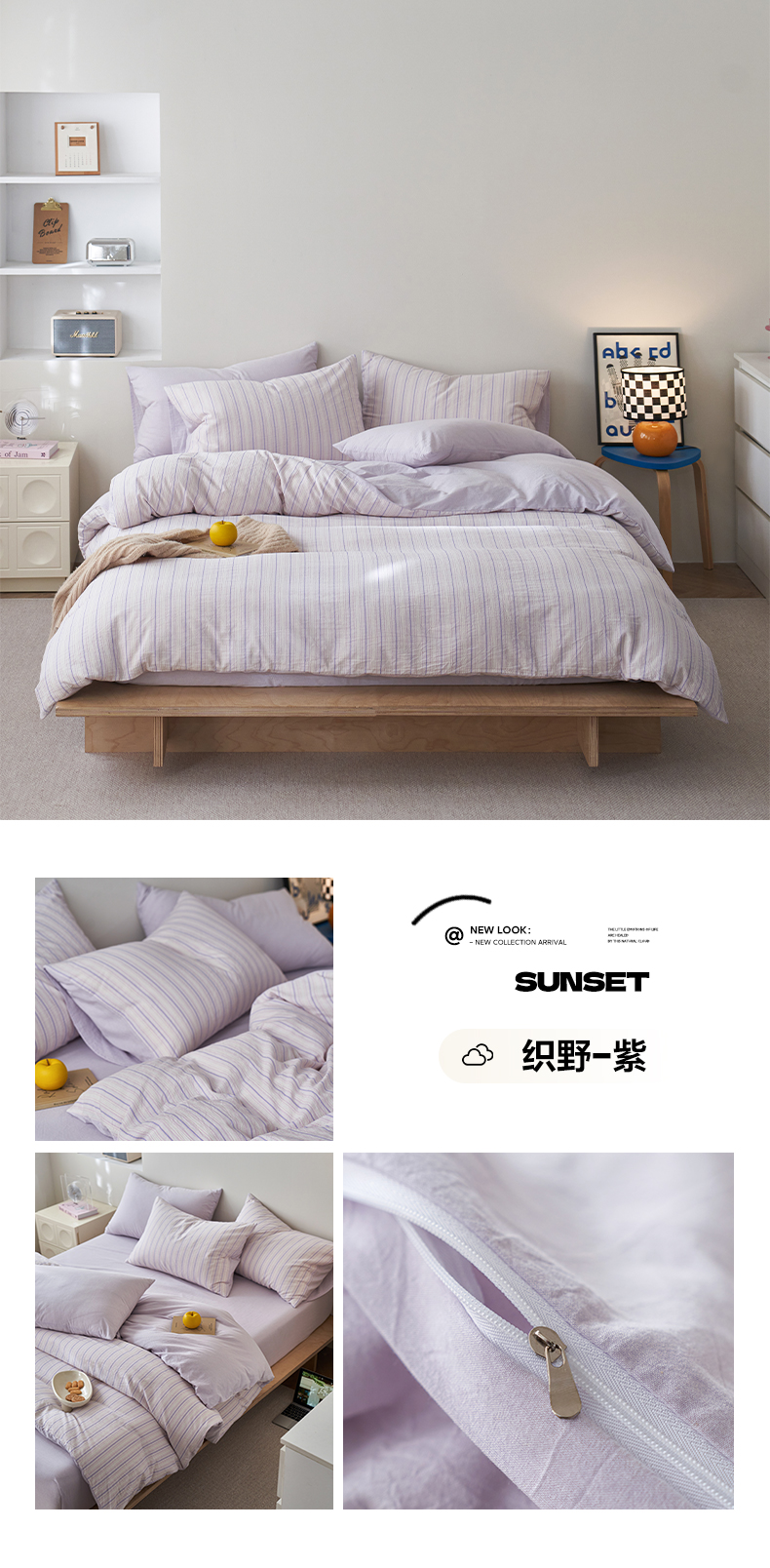 (总)如一 2026春夏新款色织全棉纯棉加密水洗棉条纹三角针四件套,晨光绿,晨曦粉,春日粉,海岸蓝,极光紫,乐谱蓝,暮烟粉,晴空橙,晴空黄,晴空灰,晴空蓝,晴空紫,野原咖,野原蓝,野原绿