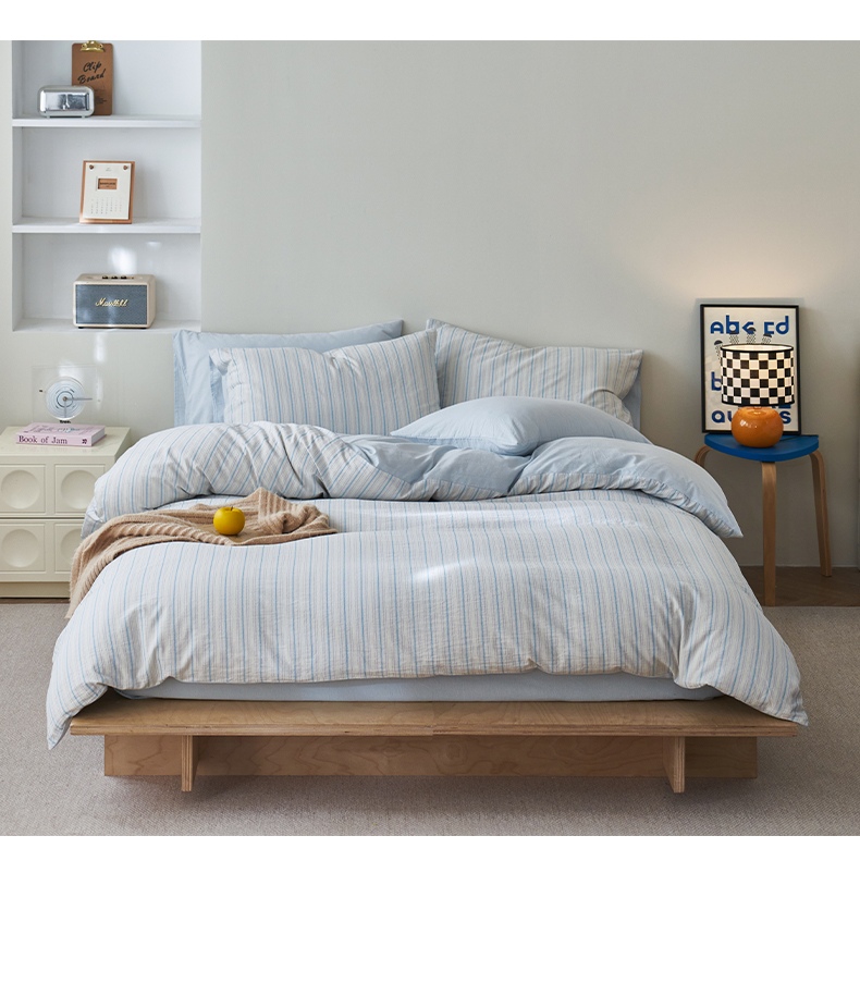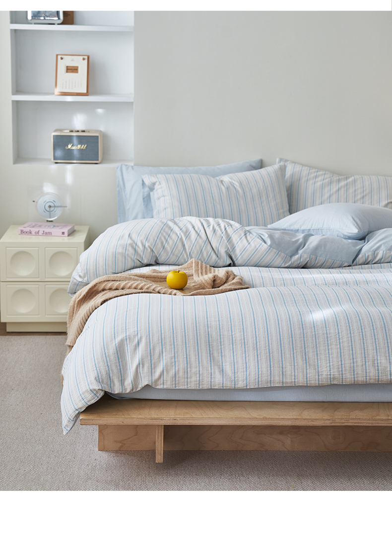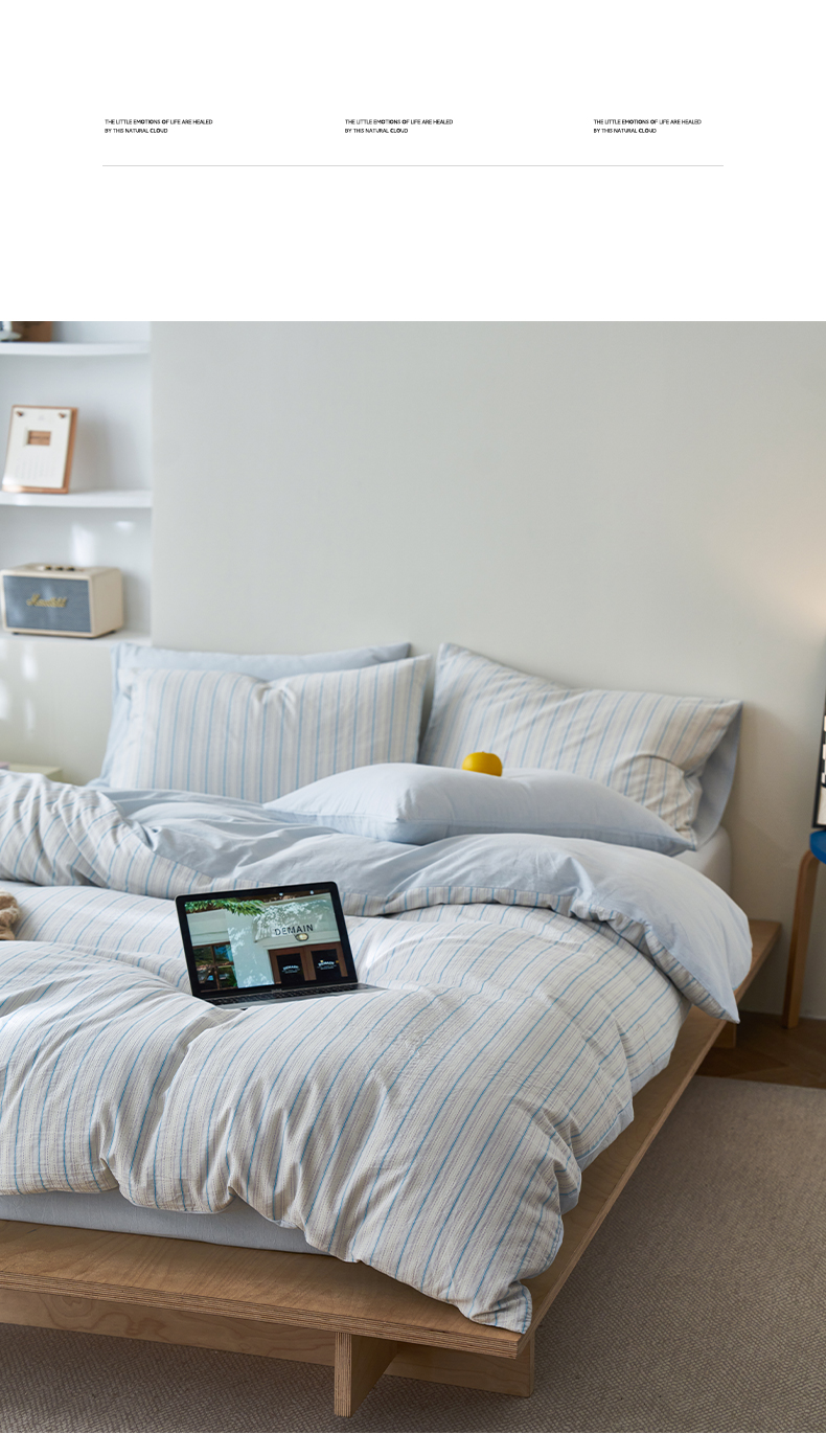 (总)如一 2026新款色织小提花条纹全棉纯棉水洗棉四件套,织野-蓝,织野-粉,织野-紫,禾风-蓝,禾风-绿,禾风-驼,禾风-紫