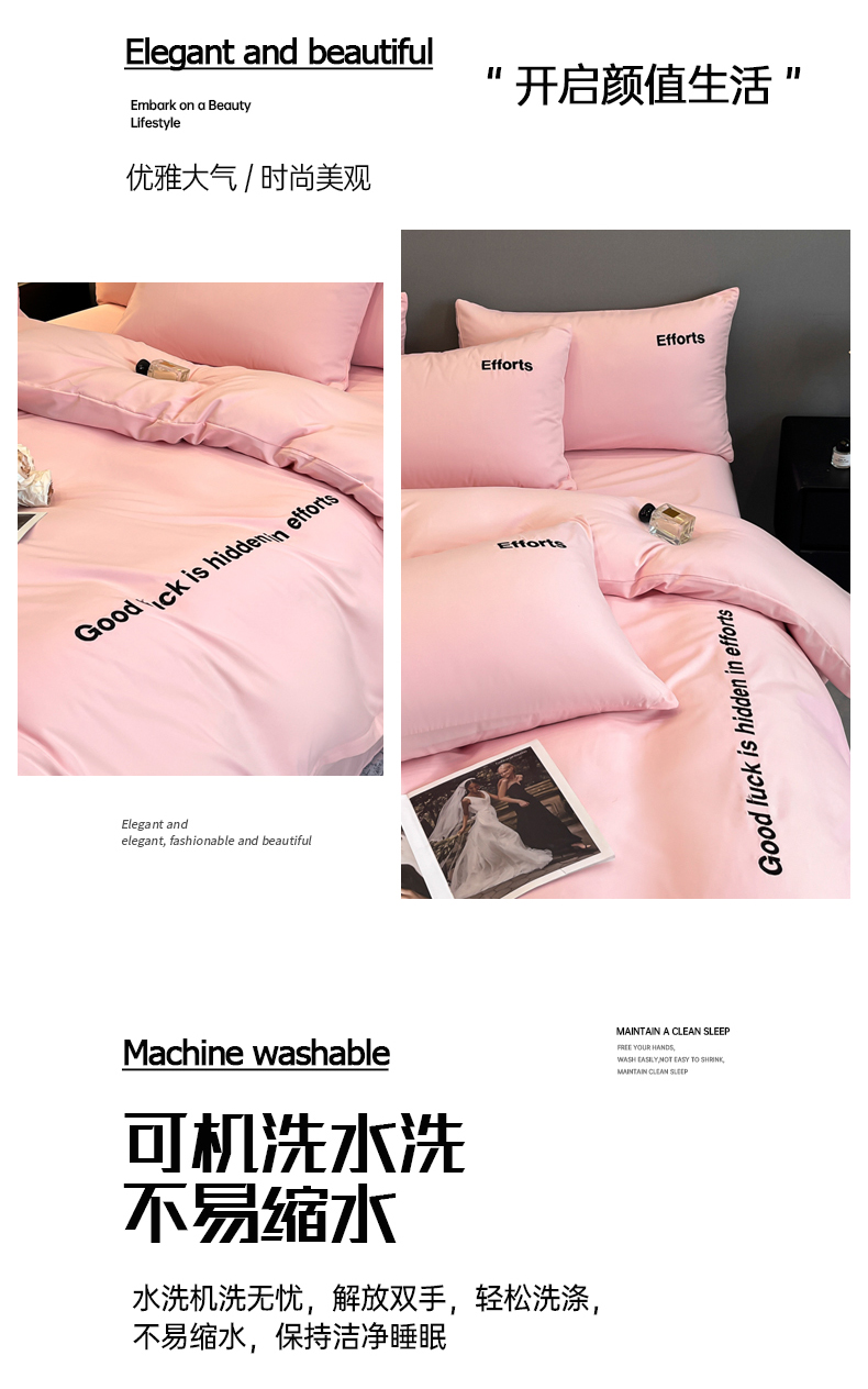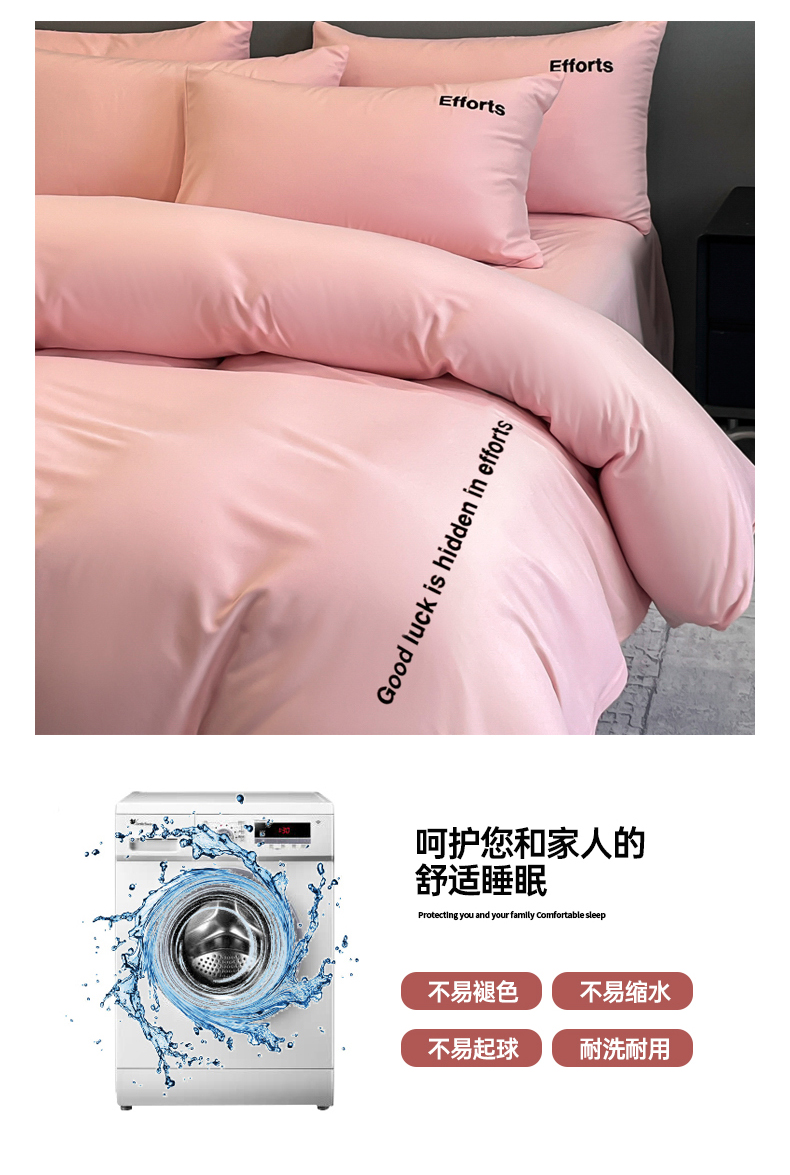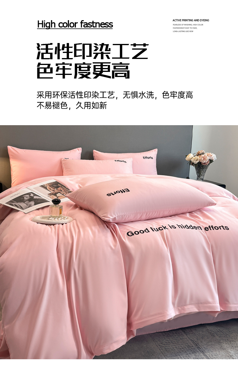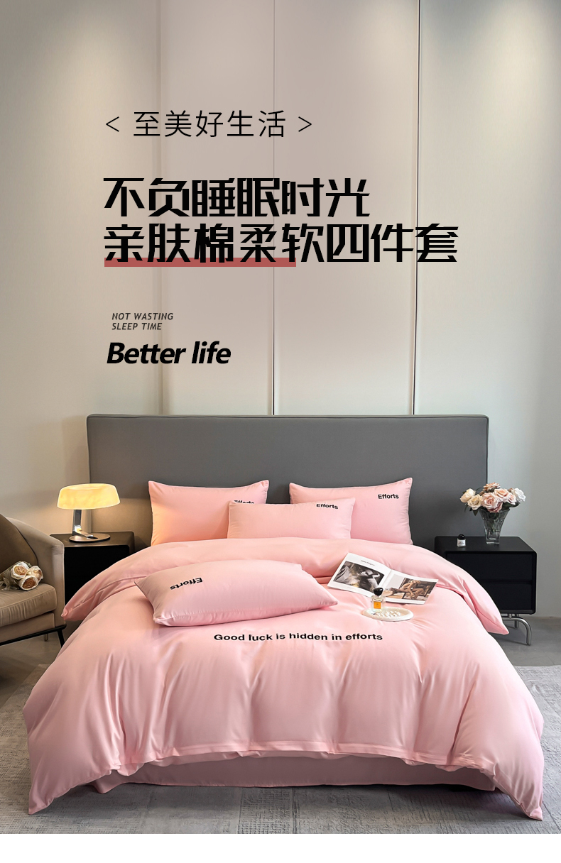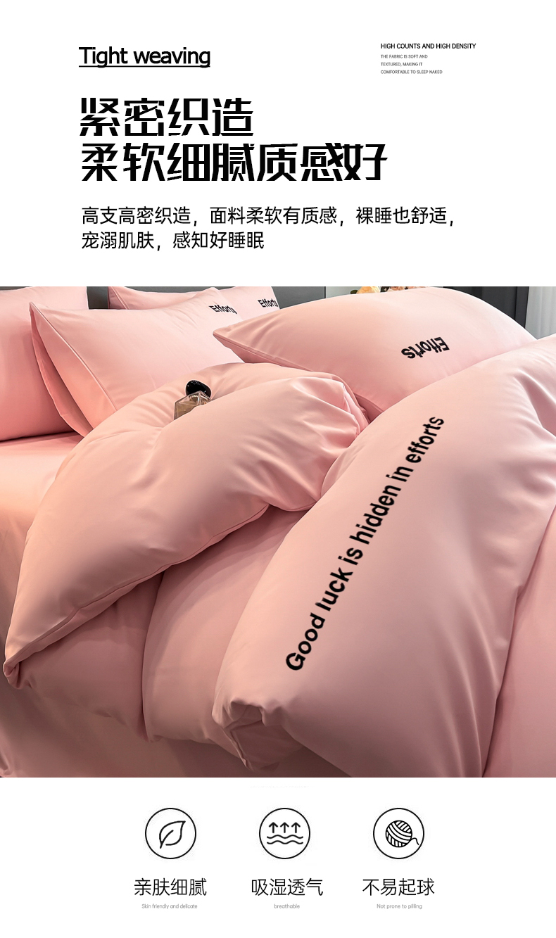 商品名称:经年 2026春夏新款亲肤棉加厚磨毛刺绣四件套-励志 励志-粉