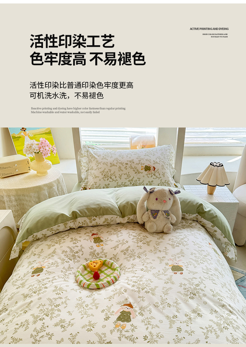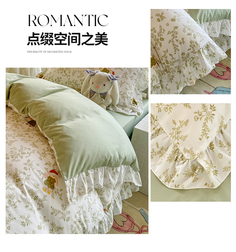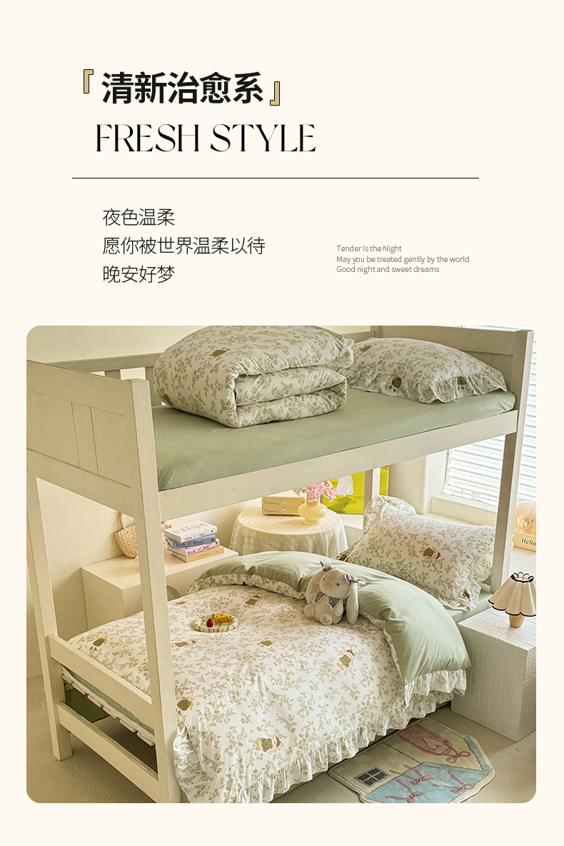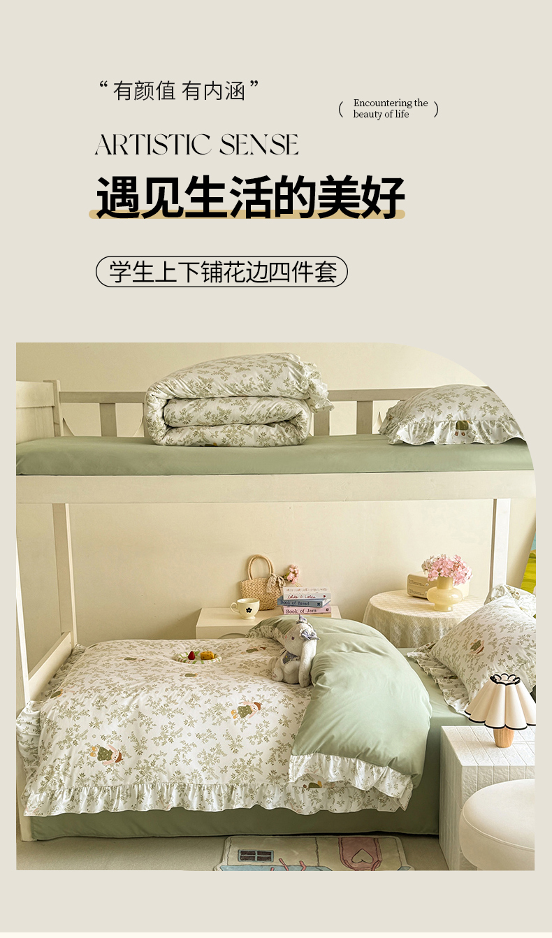 当前位置: 91家纺网 > 商品网购 > 床品套件 > 四件套 > 水洗棉四件套 > 经年 2026新款学生季上下铺韩版花边水洗云朵棉学生宿舍三件套四件套 森林兔绿