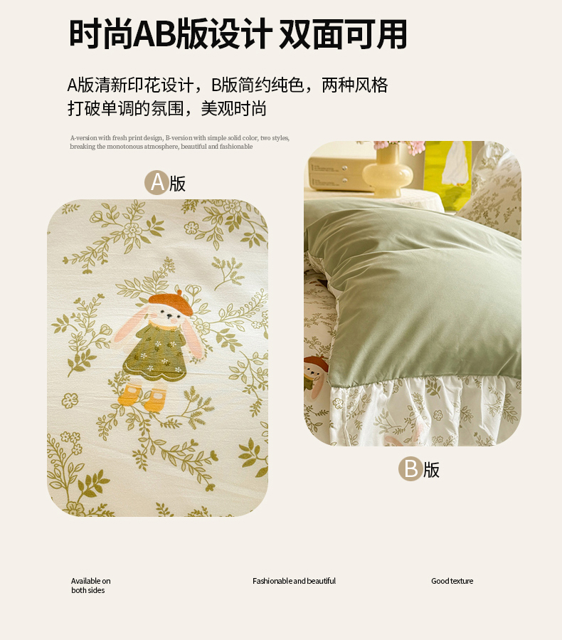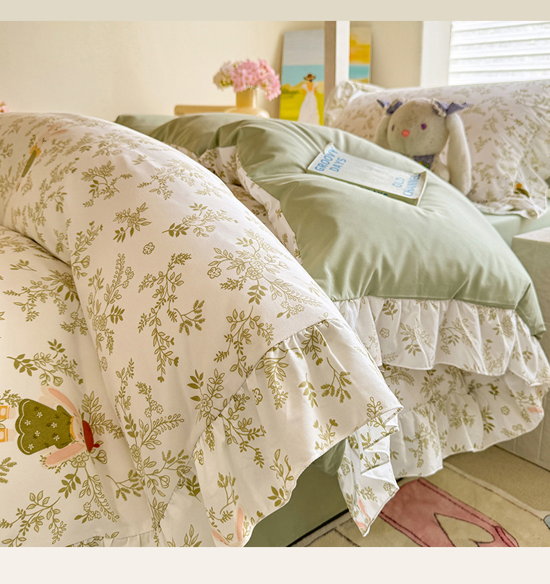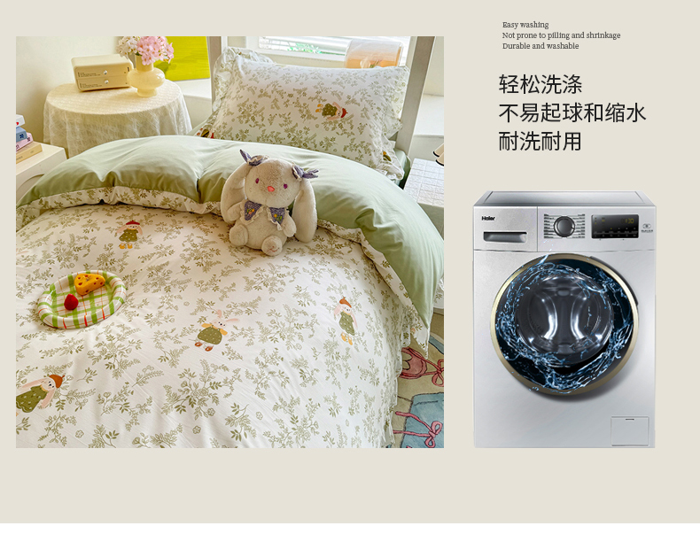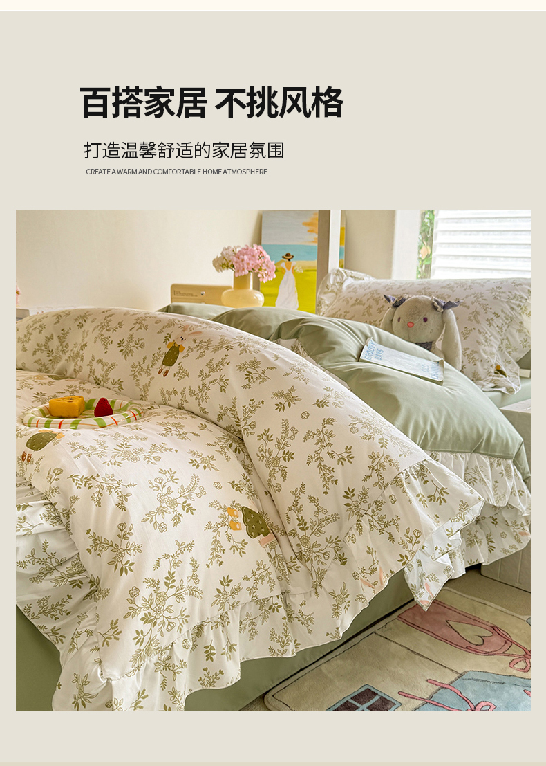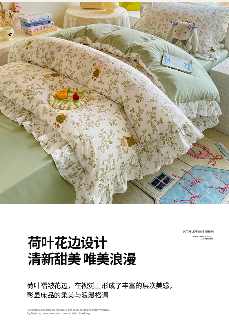 当前位置: 91家纺网 > 商品网购 > 床品套件 > 四件套 > 水洗棉四件套 > 经年 2026新款学生季上下铺韩版花边水洗云朵棉学生宿舍三件套四件套 森林兔绿