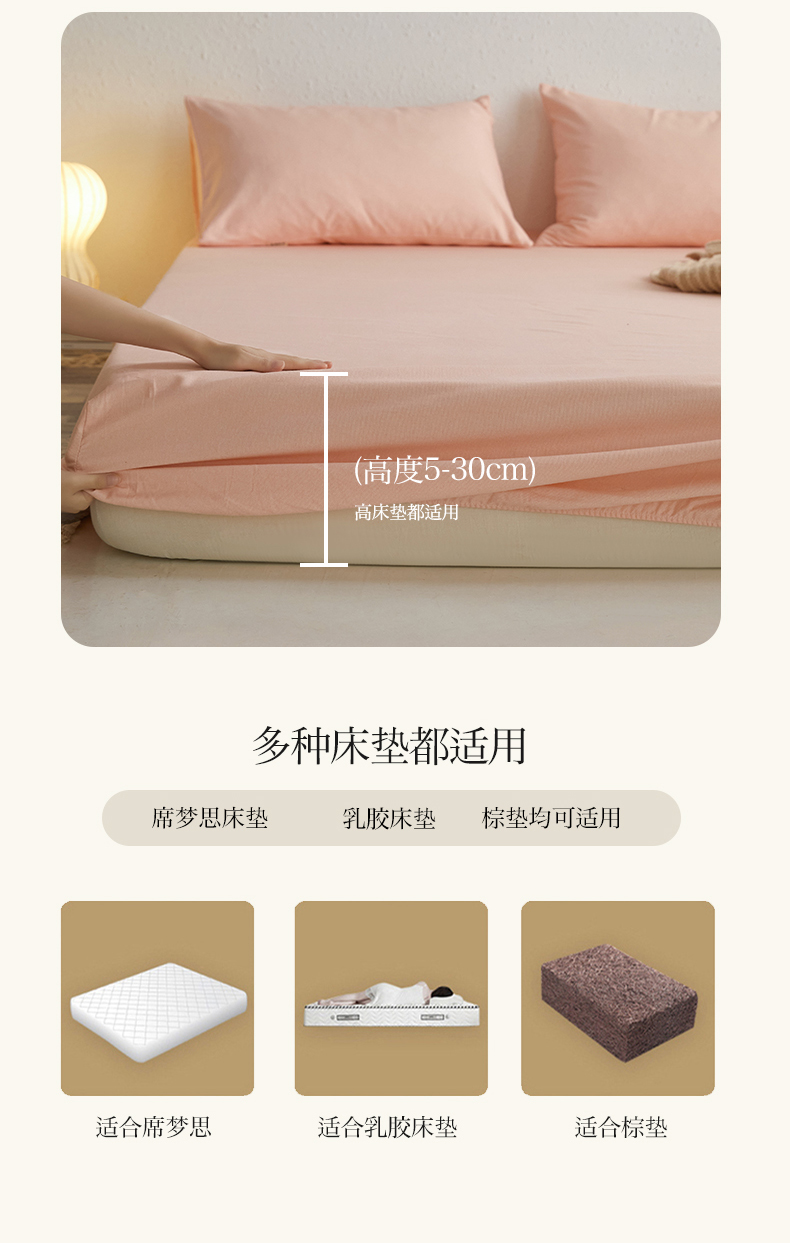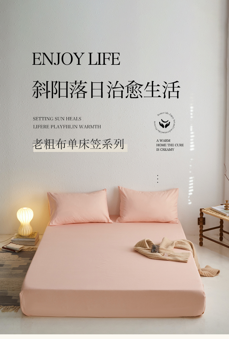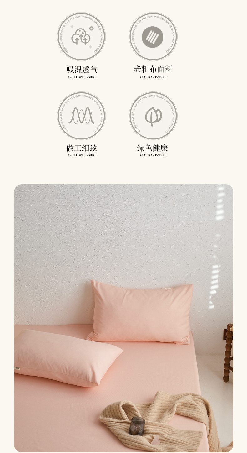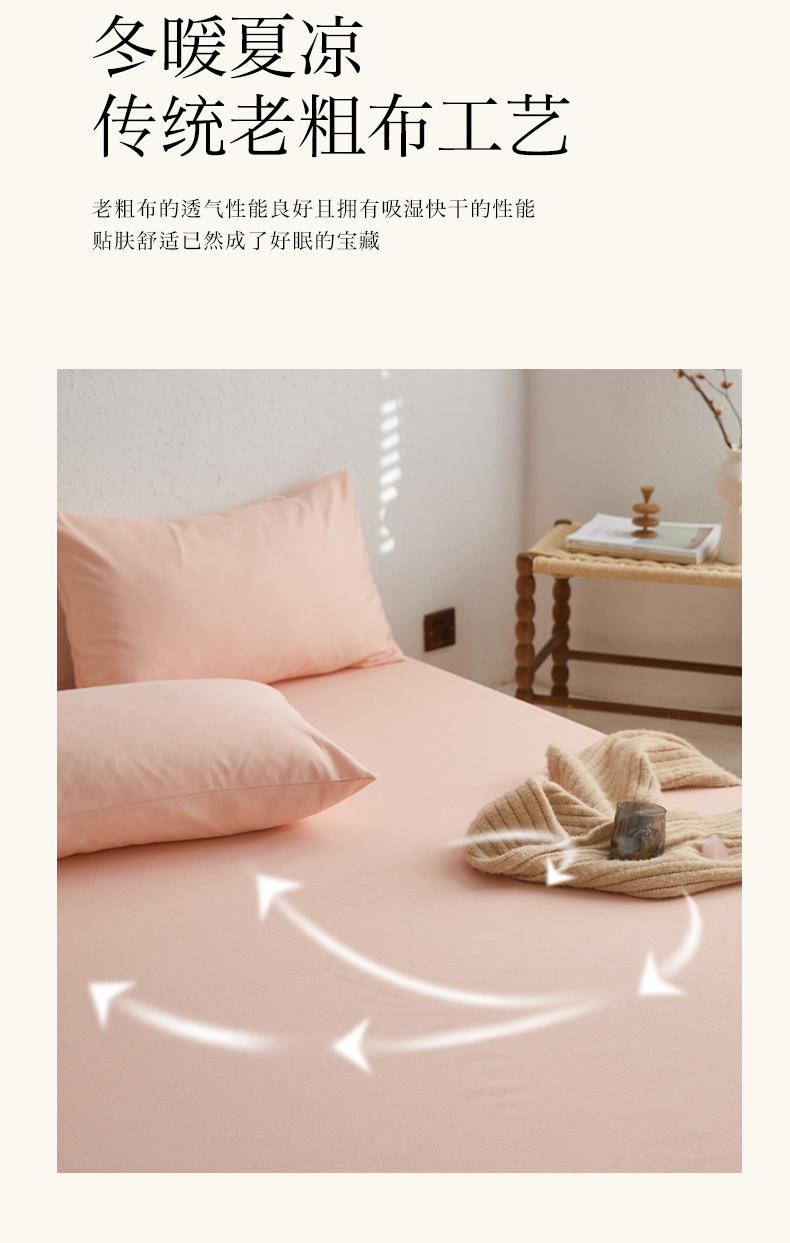 商品名称:小懒猪 2026新品全棉纯棉老粗布单品床笠床笠单件凉席席子 月白粉