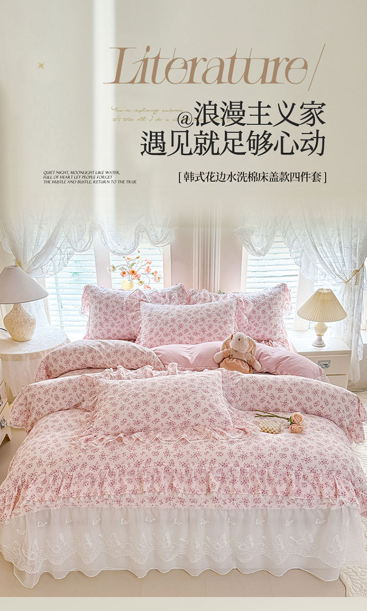 (总)苏米娜2026春夏新品韩版公主风小清新水洗棉床盖四件套针织棉双层纱纯棉棉麻全棉公主风床盖款四件套,花漾甜心-樱花粉, 花漾甜心-梦幻蓝,花漾甜心-嫩芽绿,花漾甜心-柠檬黄 ,花漾甜心-香芋紫