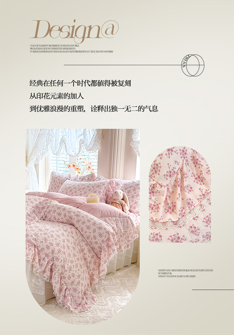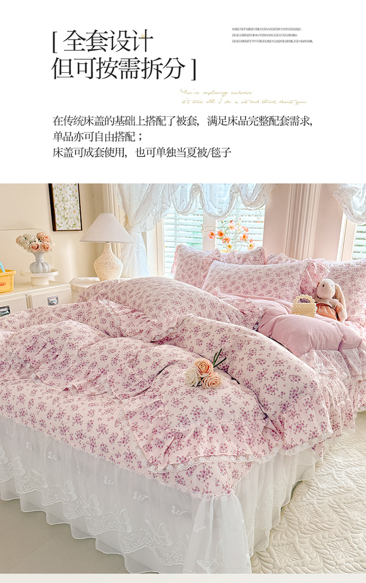(总)专柜品质苏米娜家纺2026春夏韩版法式公主风水洗棉床盖款多功能二合一被套 夏被床盖四件套--花颜系列,花颜-樱花粉 ,花颜-梦幻蓝 ,花颜-奶油白, 花颜-嫩芽绿 ,花颜-香芋紫