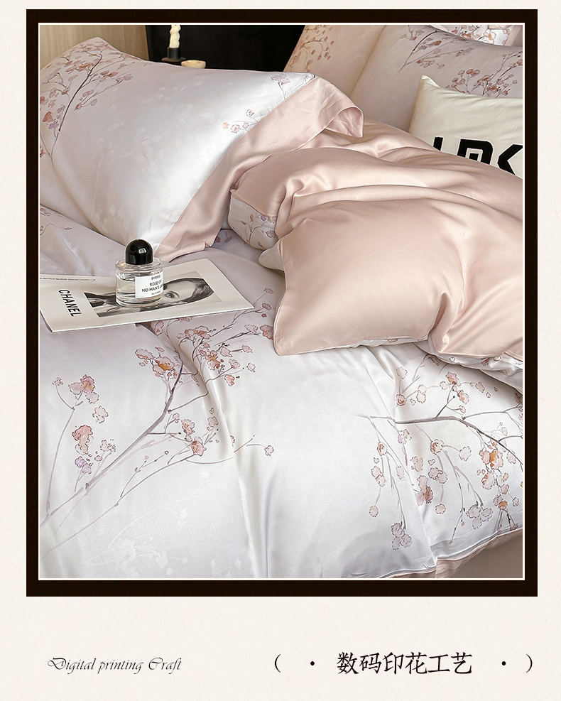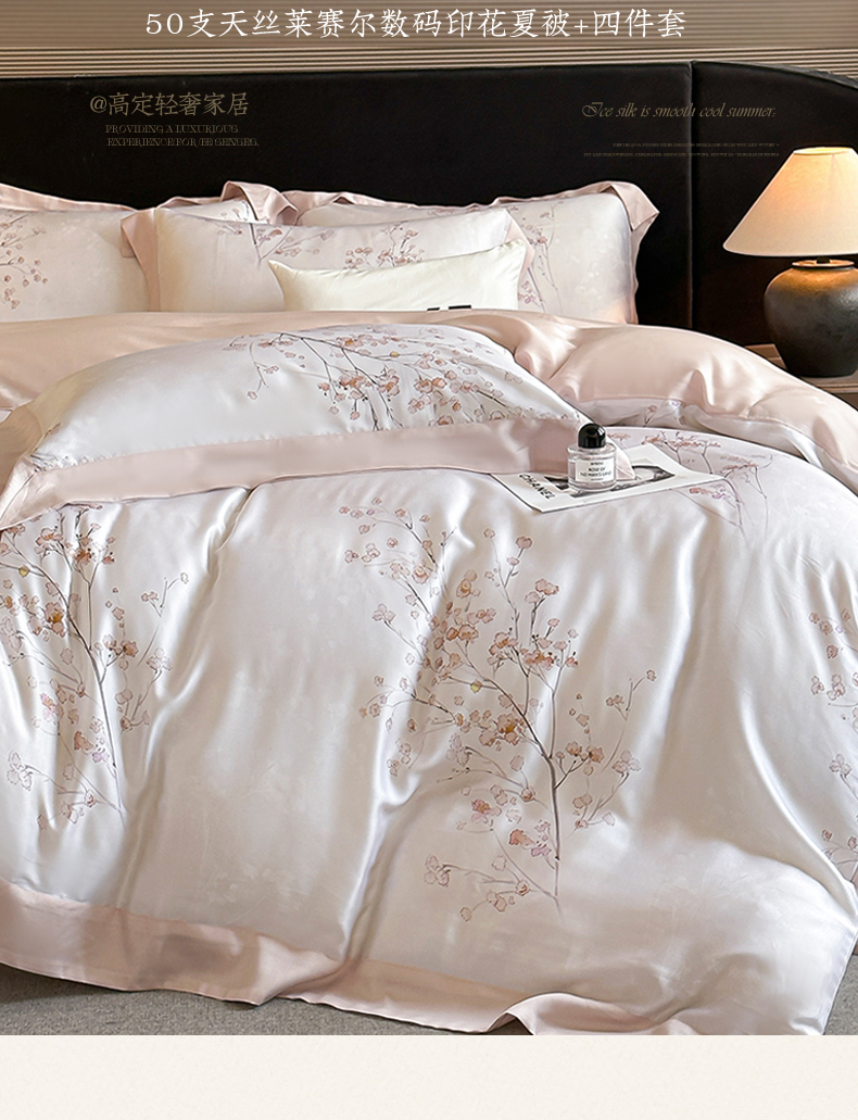 当前位置: 91家纺网 > 商品网购 > 床品套件 > 四件套 > 莱赛尔四件套 > 蓝米卡夫 2026夏季新款50S天丝数码印花夏被夏凉被空调被四件套 堂影寻-粉