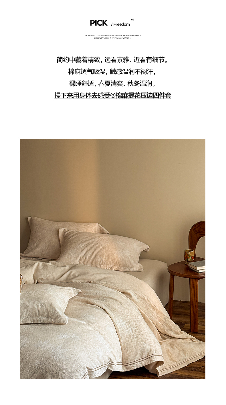 当前位置: 91家纺网 > 商品网购 > 床品套件 > 四件套 > 其它四件套 > 澳萝拉 2026新款棉麻提花压边四件套 木兮