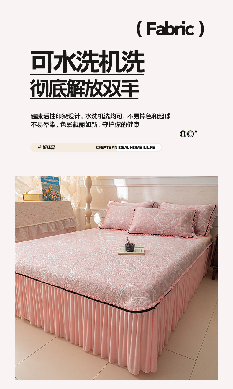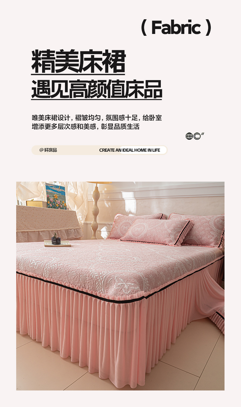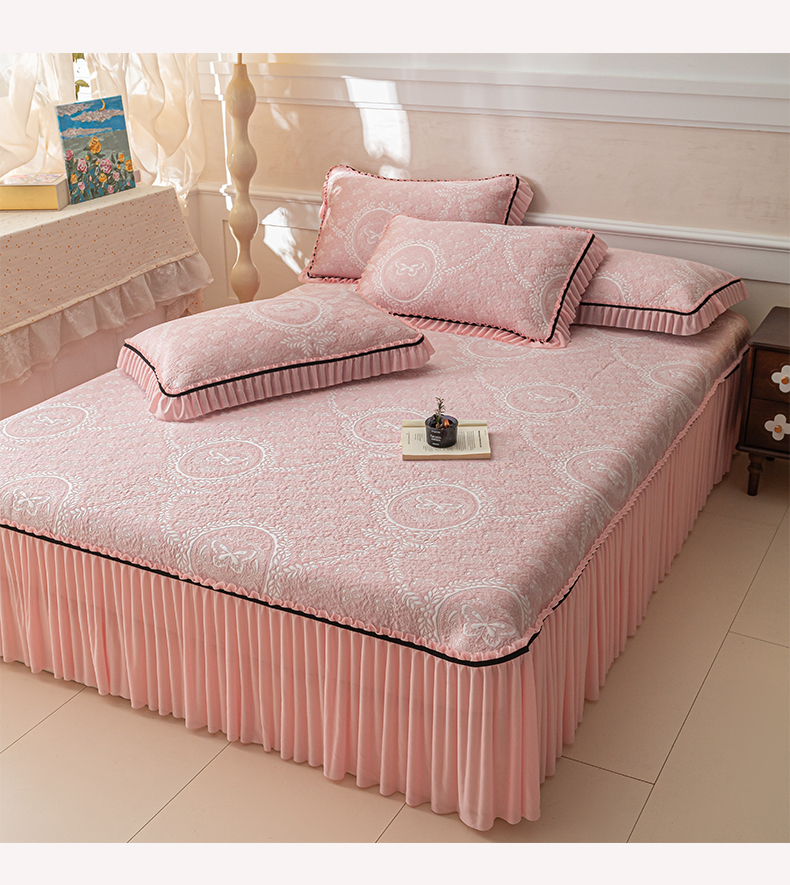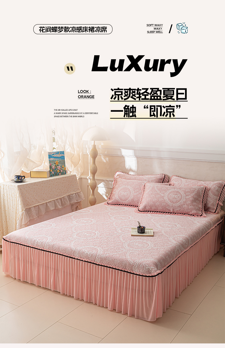 商品名称:雅居纺家纺 2026新款花间蝶梦款凉感床裙凉席席子 花间蝶梦-粉