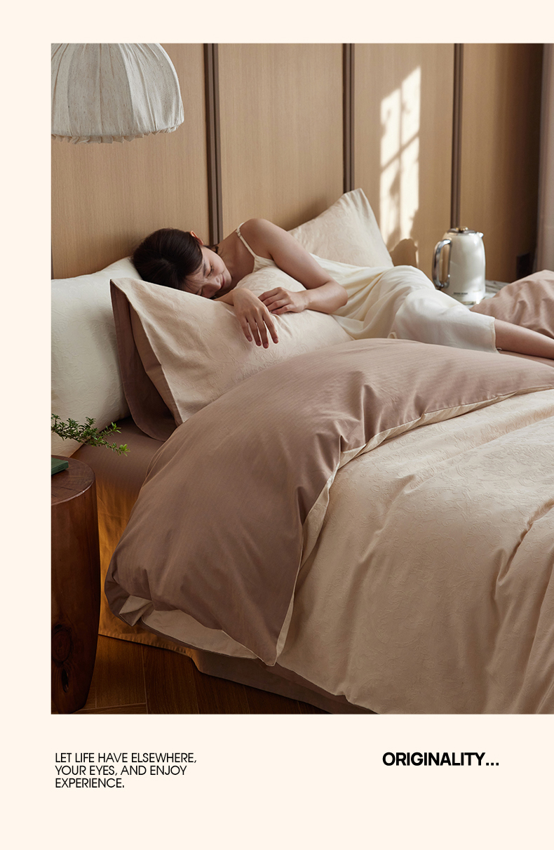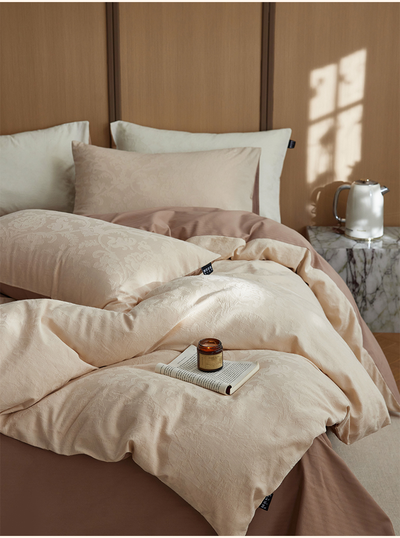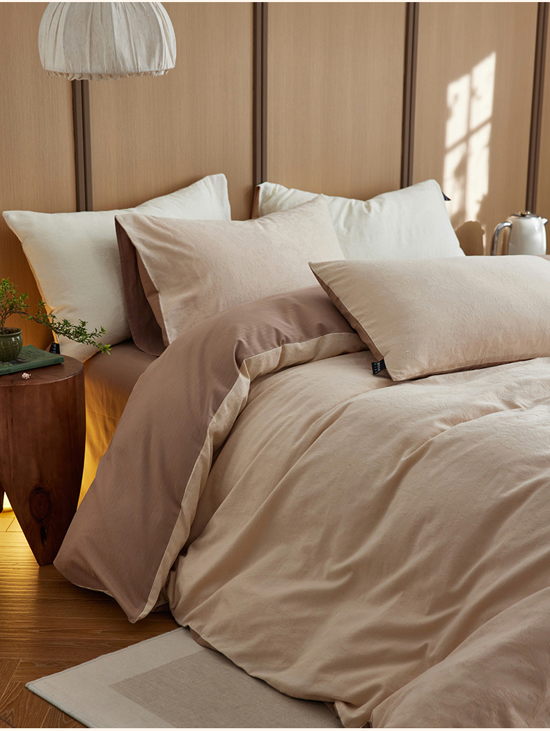 当前位置: 91家纺网 > 商品网购 > 床品套件 > 四件套 > 其它四件套 > 沐珩家纺 2026新款全棉纯棉提花大雁纹磨毛四件套人字纹四件套(欧式茛苕纹) 茛苕纹-暖米咖