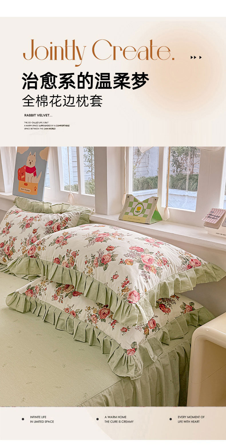 (总)缦彩 2026新款A类全棉纯棉大花边拉链单枕套枕套单件,春缇玫瑰,春光里,梵夕,花春城,奢香夫人,时花令-红,香菊-绿,叶语薇薇