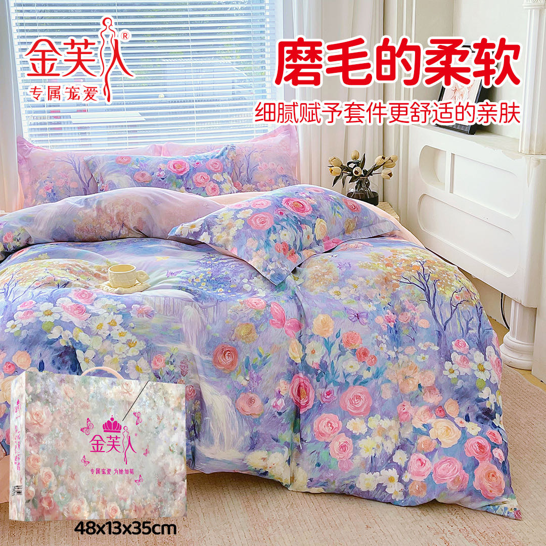 (总)大版数码印花 长绒棉 四件套加厚棉柔 繁花相伴团购促销礼品会销礼盒装
