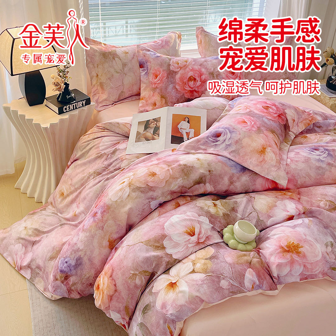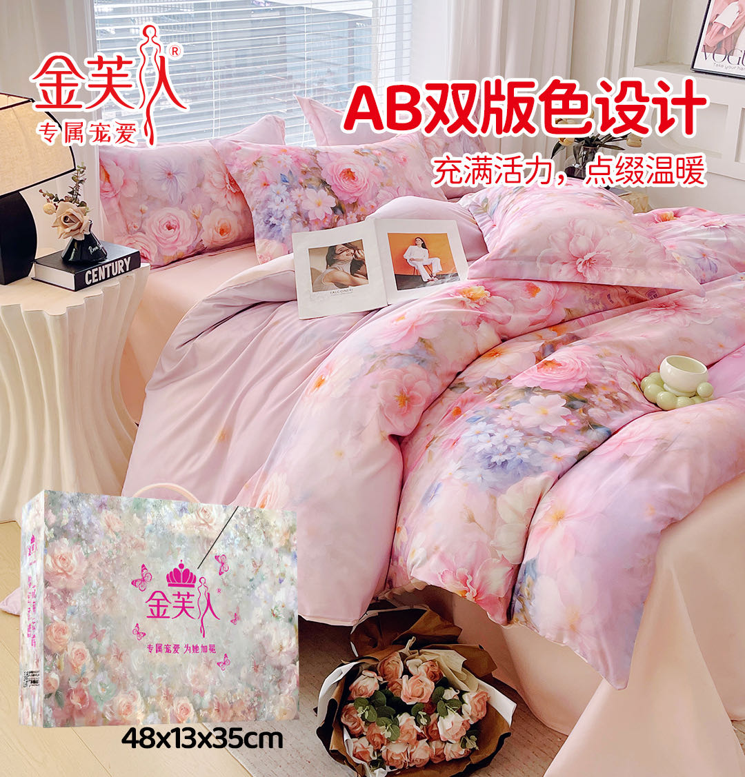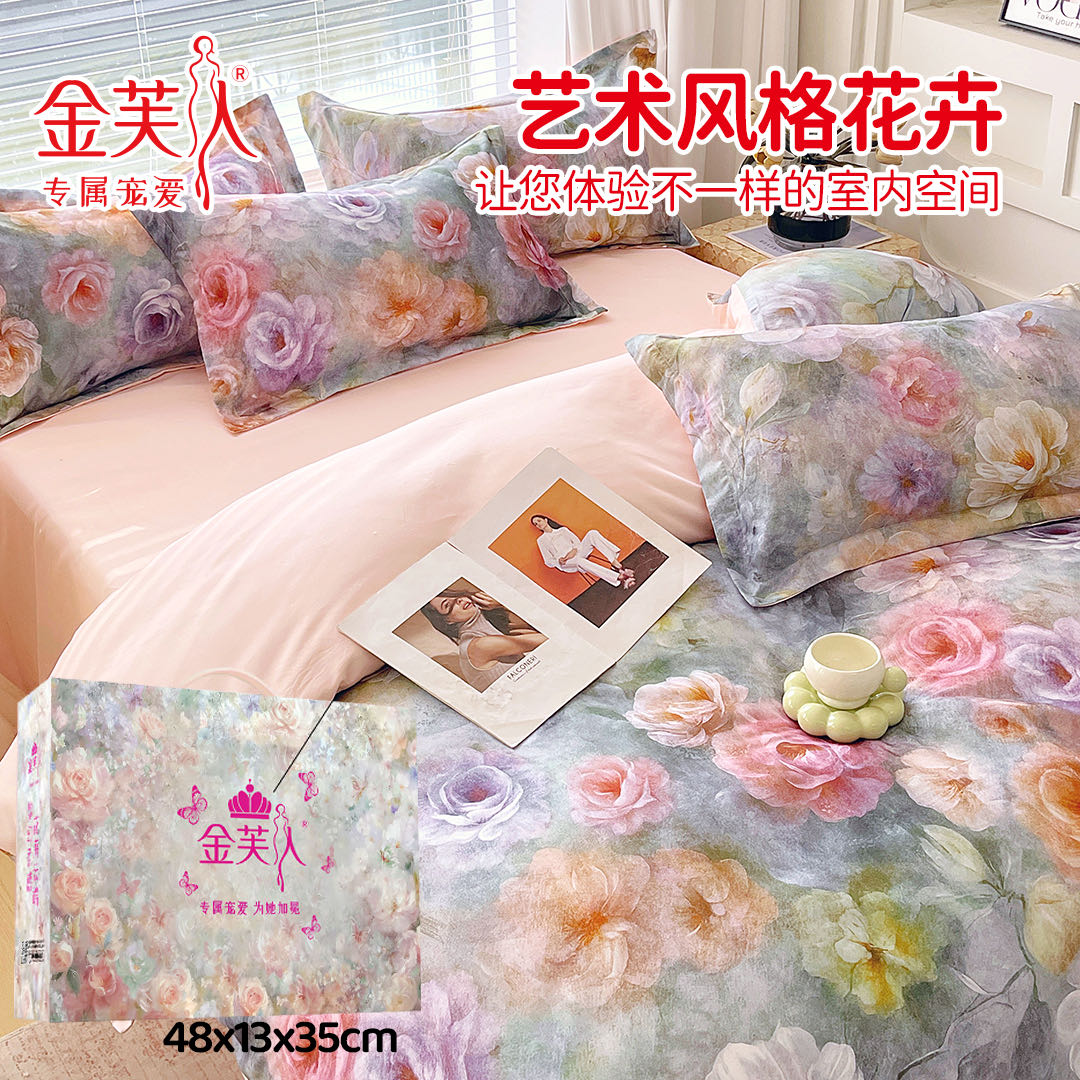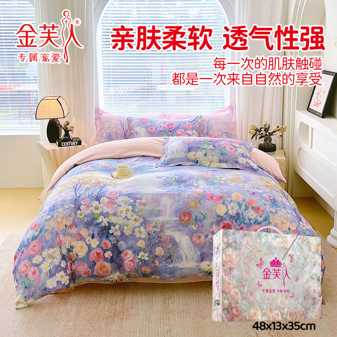 (总)水洗天丝数码印花 花卉系列天丝四件套团购促销礼品会销礼盒装,花色