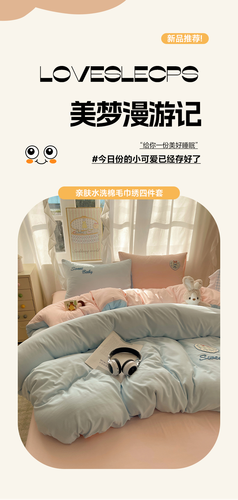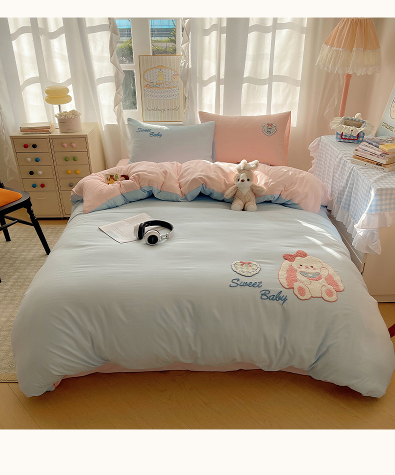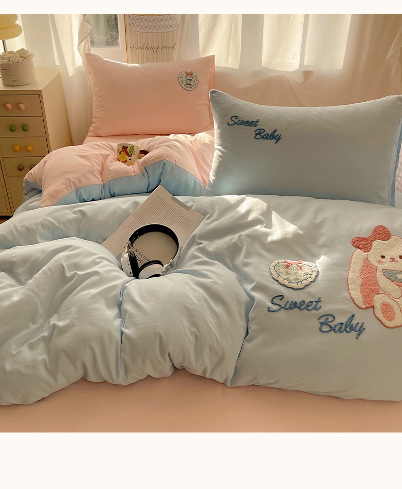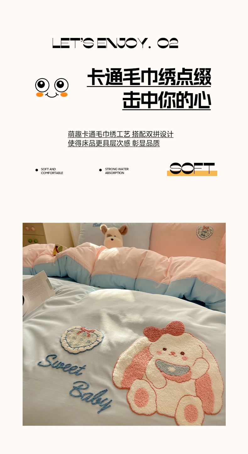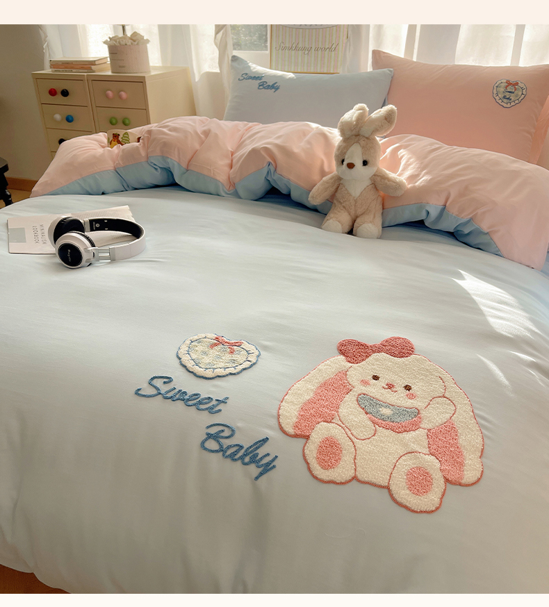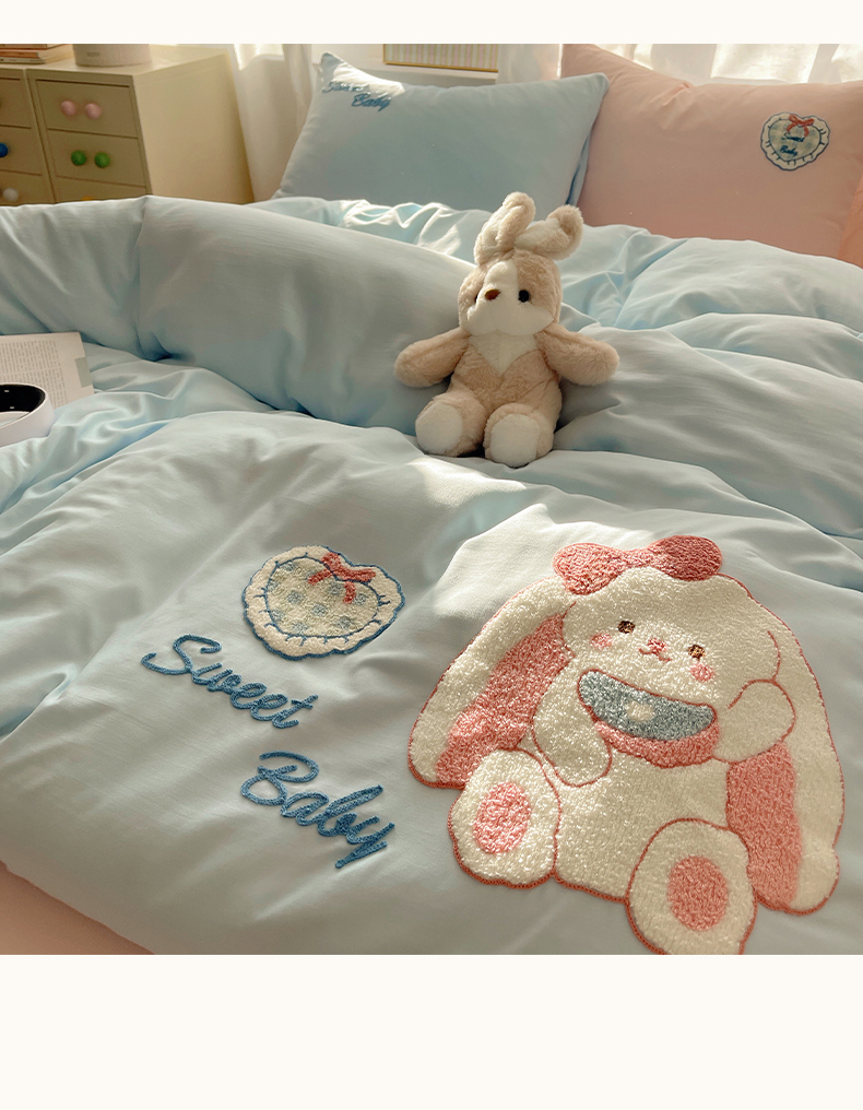 当前位置: 91家纺网 > 商品网购 > 床品套件 > 四件套 > 其它四件套 > 韩都家居 2026春夏新款亲肤舒适毛巾绣四件套(包含买家秀原图) 爱心小兔