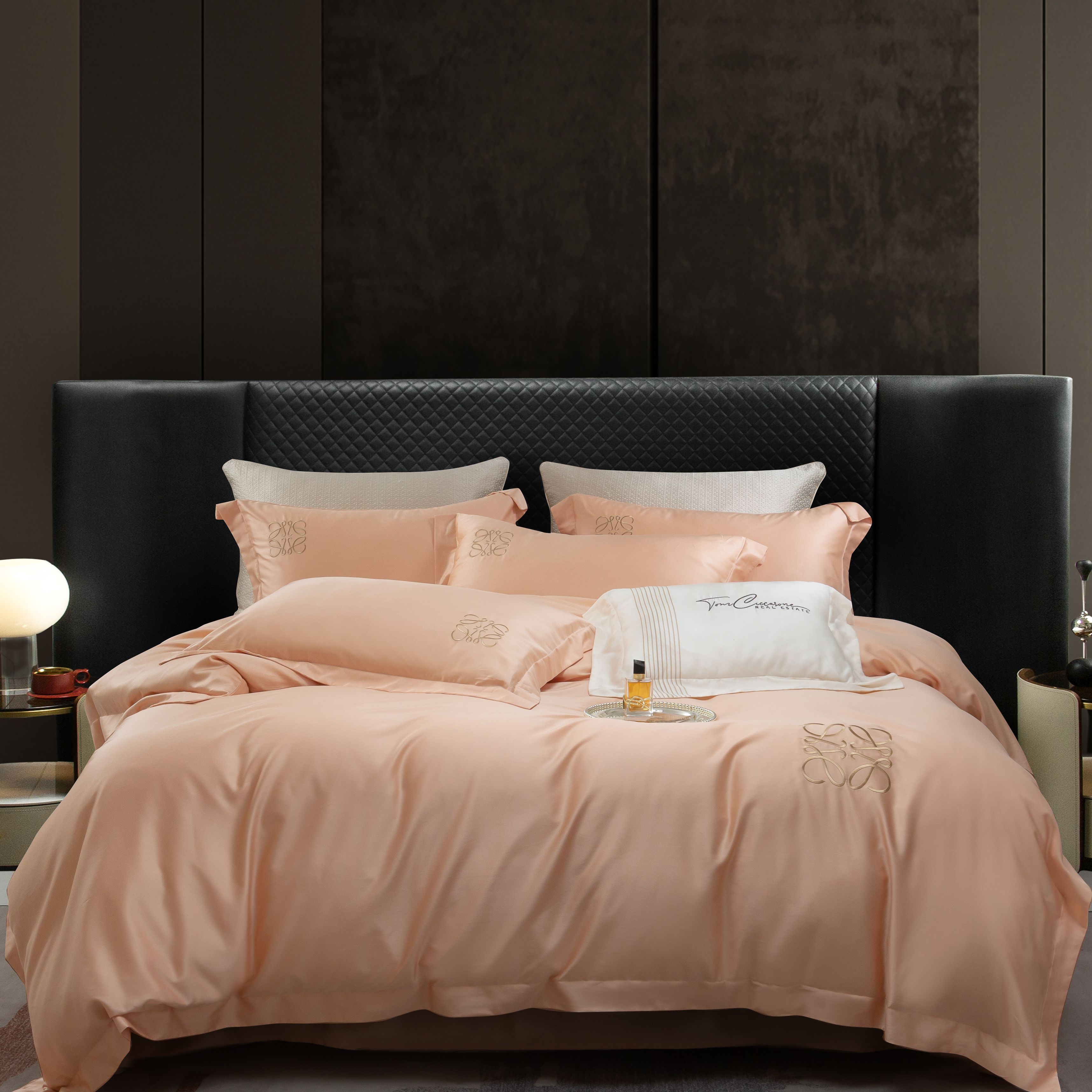 莱豫家纺 2026春夏新款100s兰精天丝绣花四件套 罗意威黄